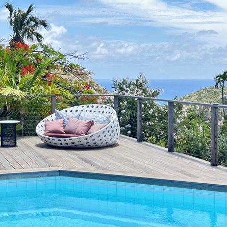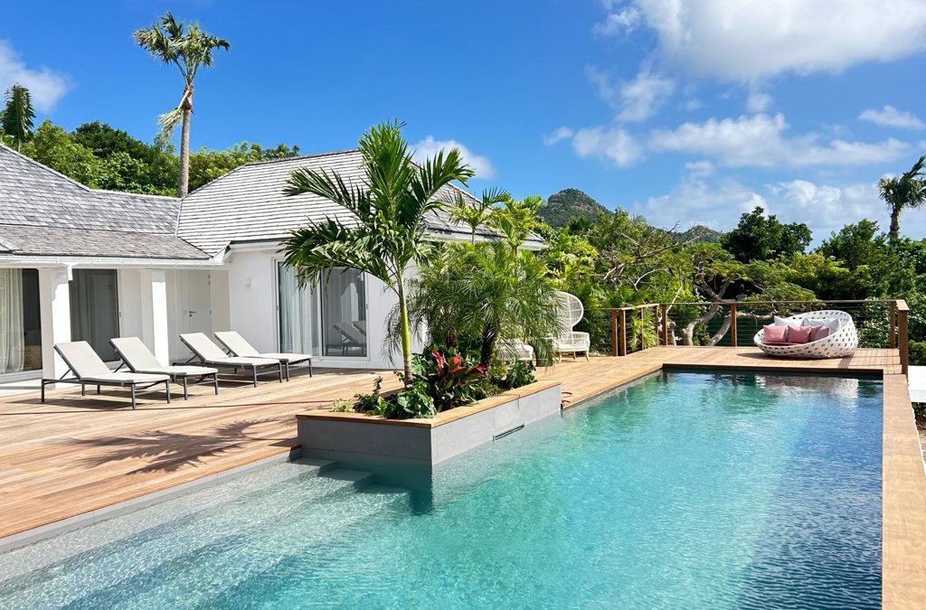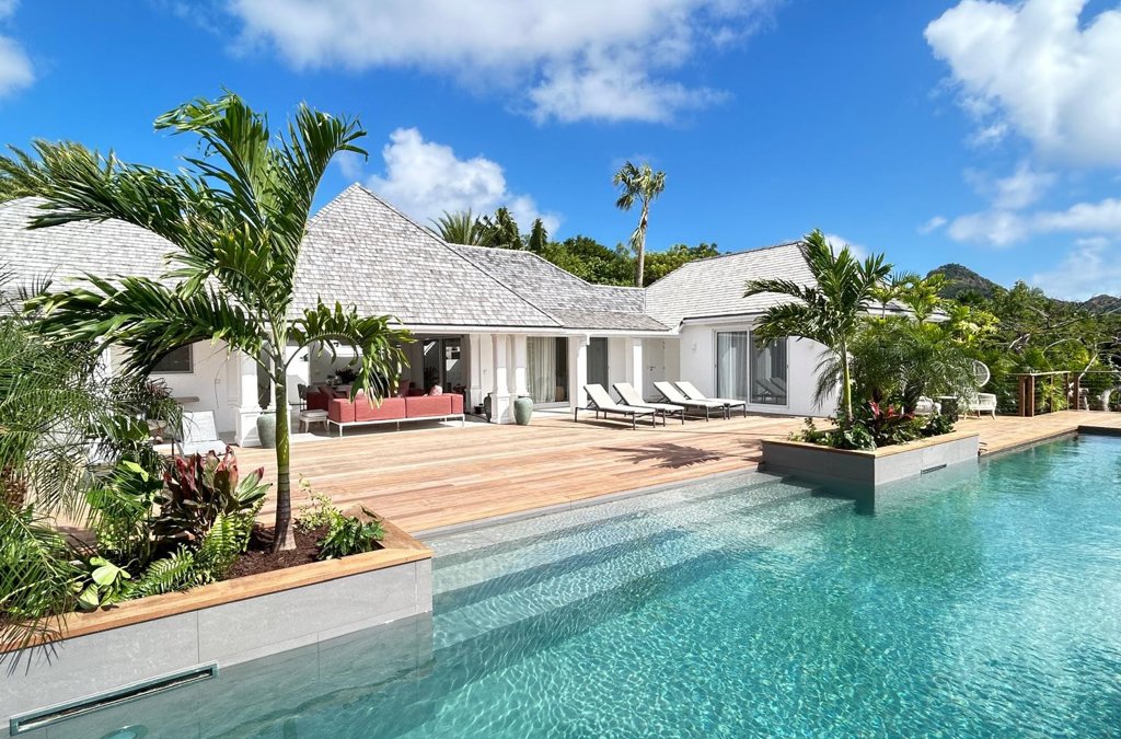An easy-living family home in St Jean, very close to Eden Rock – St Barths, Villa Bel Air offers soft contemporary and creole interiors, a lush garden and inspiring partial sunset views over the mountain.