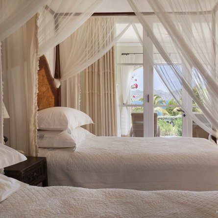 Sea & Garden view, Private terrace, Air conditioning, Fan, King size bed, Closet, Desk, Dish, Black out curtains, Mosquito screen, Safe.