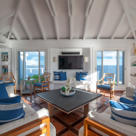 An iconic property built in the traditional St.Barths style and modernized for today’s living, Villa Cap au Vent is perched on a seaside cliff, displaying views at a full 270o and wide-open spaces for total relaxation – indoors and out.