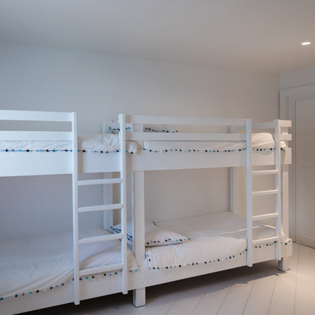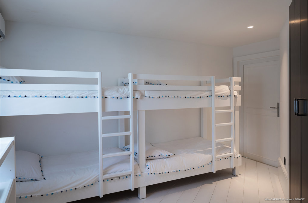 Four single beds (Two bunks beds). Ensuite bathroom, Walk-in shower, Sink, Open toilet. Connecting with Bedroom 5.
