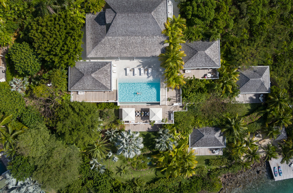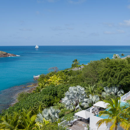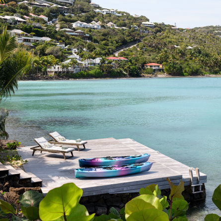 Offering direct access to Marigot Bay via a private pontoon, Villa Captiva is split across several fully air-conditioned levels and features English style décor throughout its common areas and suites, as well as an expansive garden for true privacy.