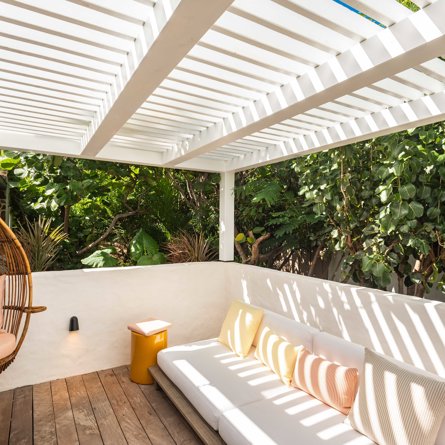 Garden view, Private terrace, Air conditioning, Queen size bed, Closet, Desk, Black out curtains, Safe.