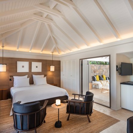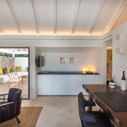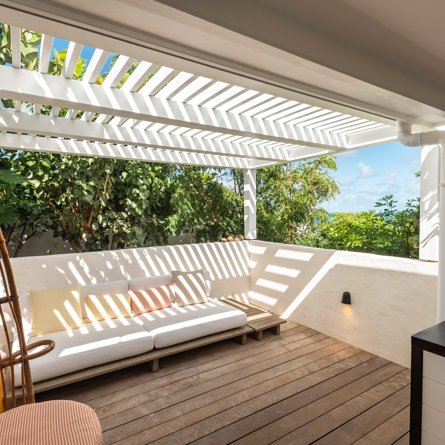 Full of small nooks and crannies to discover, St. Bath’s traditional-style Villa Casa Minotto packs a lot of charm into a petite package through clever use of block kitchen/living and sleeping areas, and thoughtfully curated works of art and decor – though perhaps none are more beautiful than the breezy, east-facing ocean view over Mont Jean.