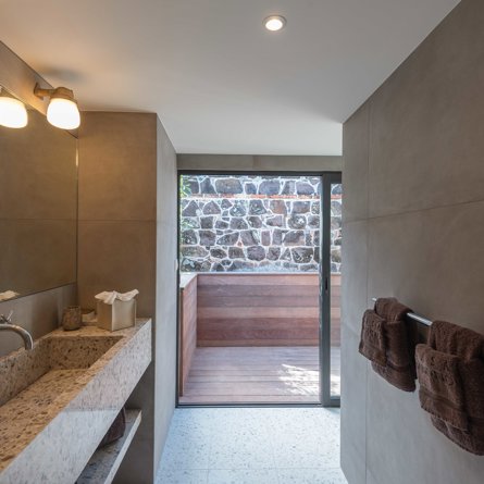Ensuite bathroom, Walk-in shower, Outside shower, Sink, Hair dryer, Separate toilet.