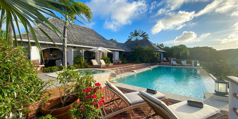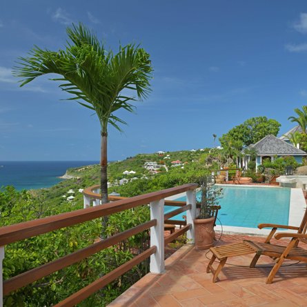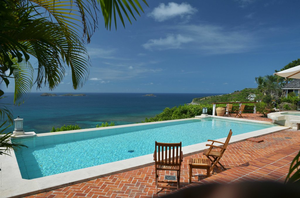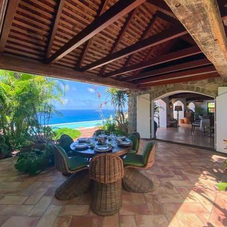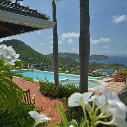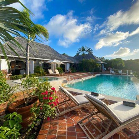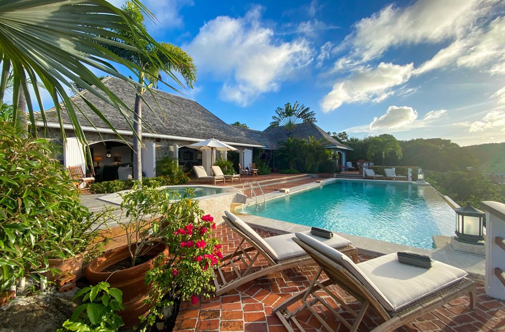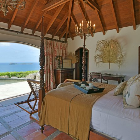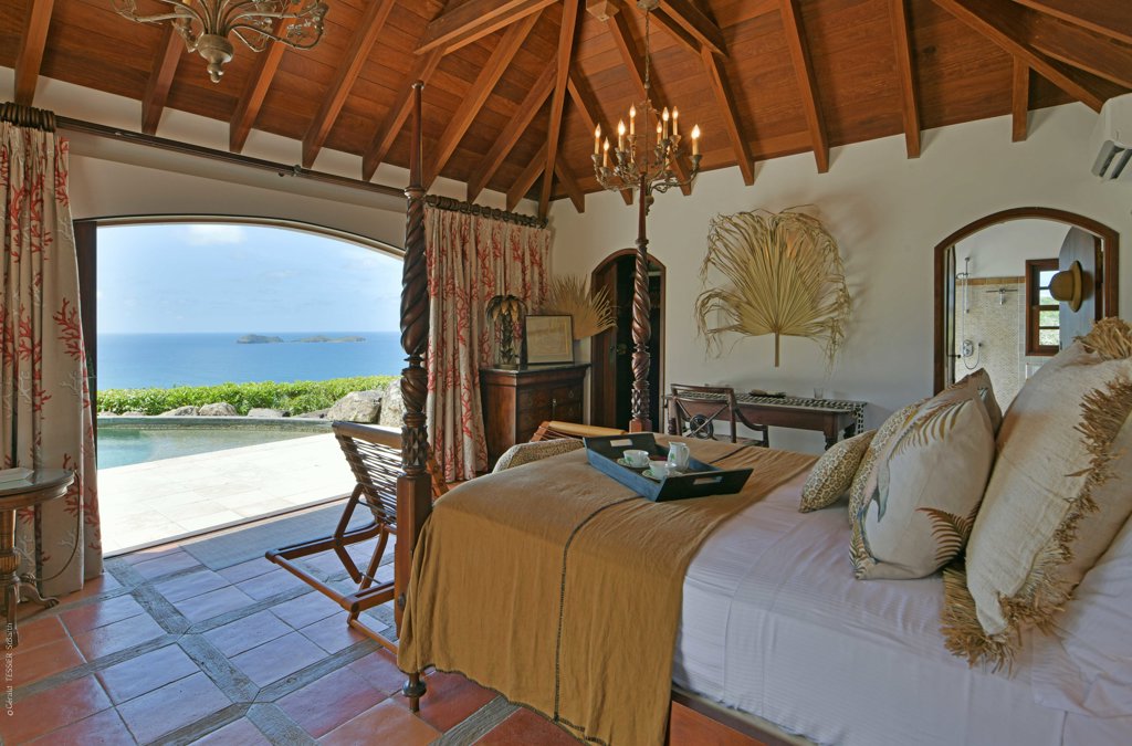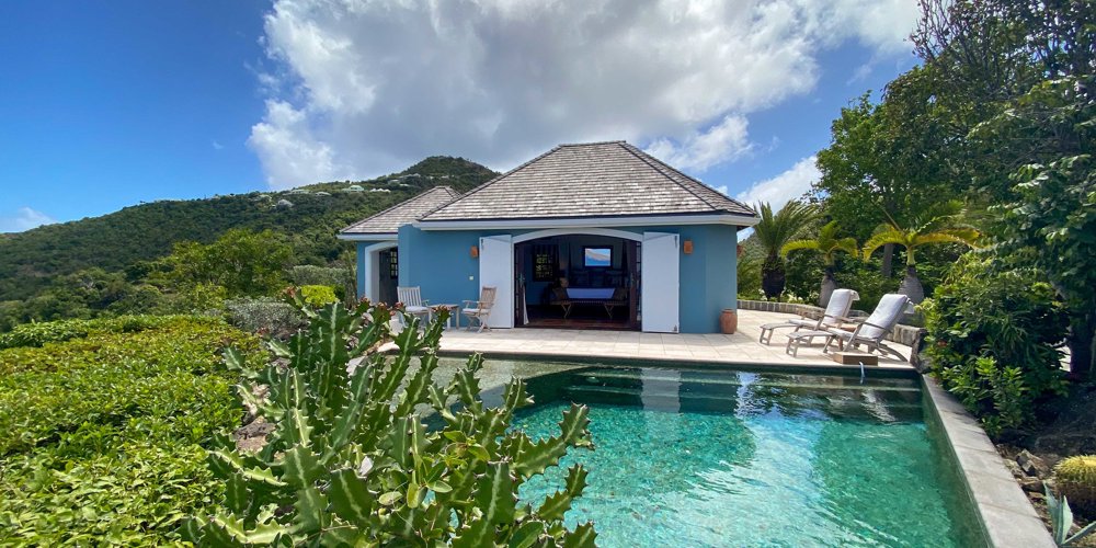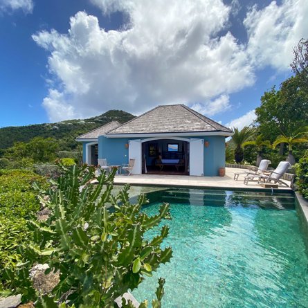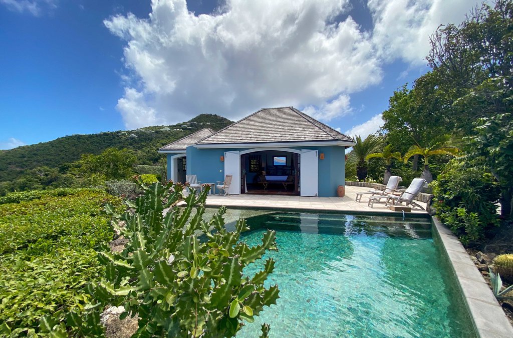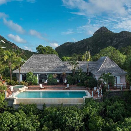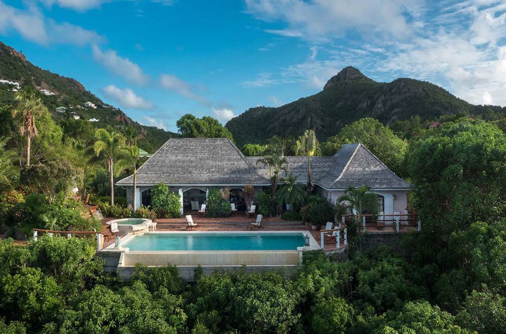 A St. Barths original, Villa Chanticleer features jaw-dropping views over Lorient and old-school Caribbean vibes with three large bedroom bungalows and two smaller attached bedrooms, as well as plenty of activities thanks to a tennis court, a spacious garden, and two pools…a dream villa for a family with teens.