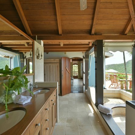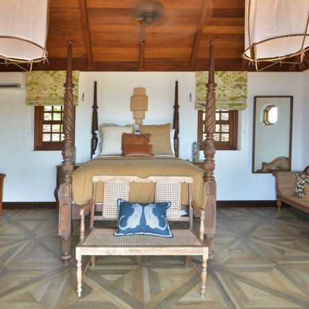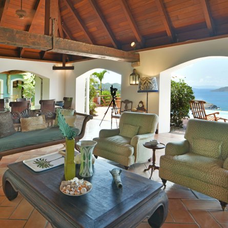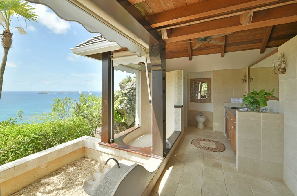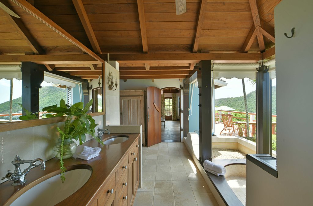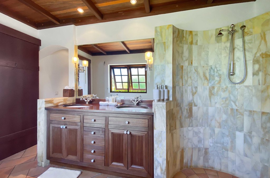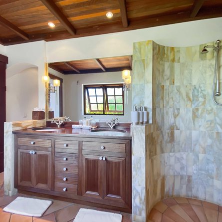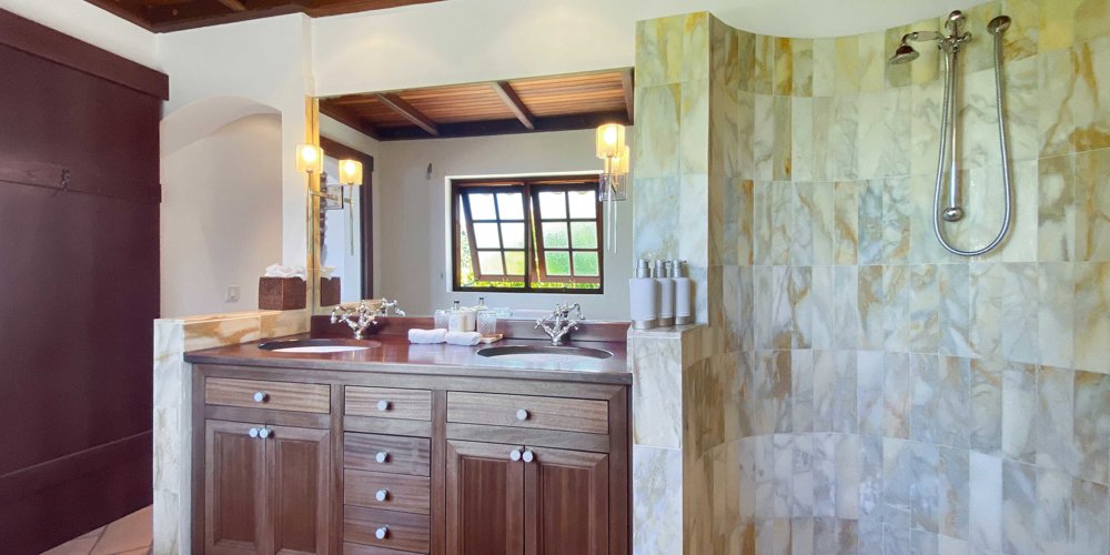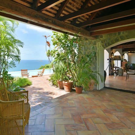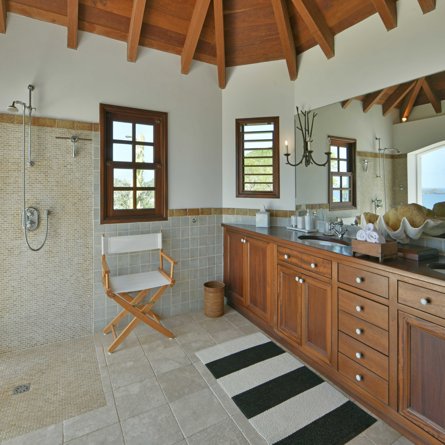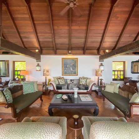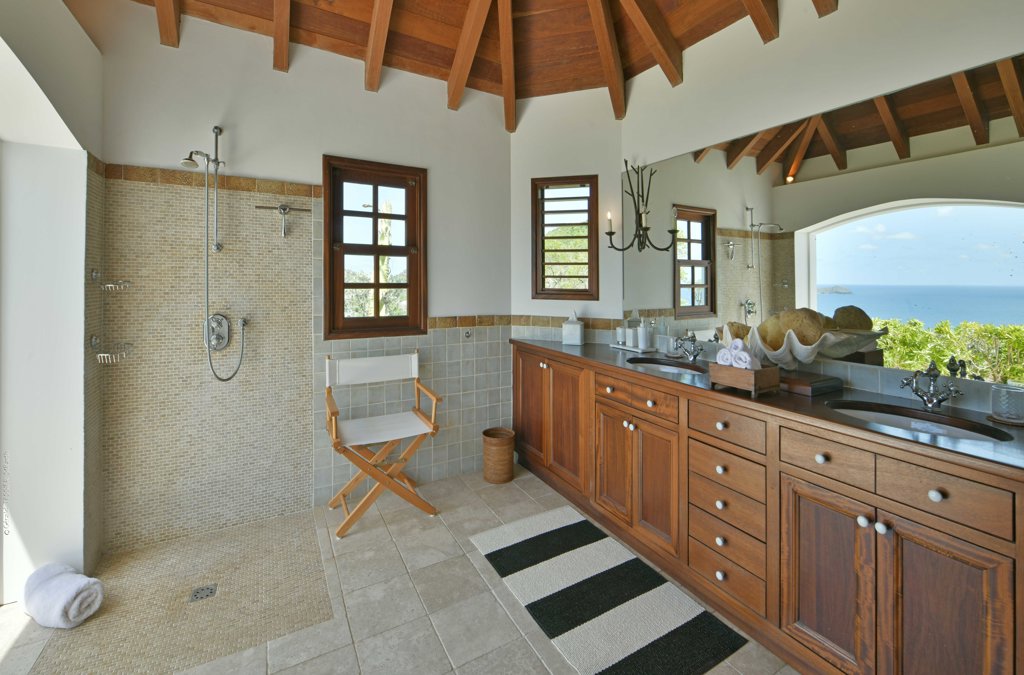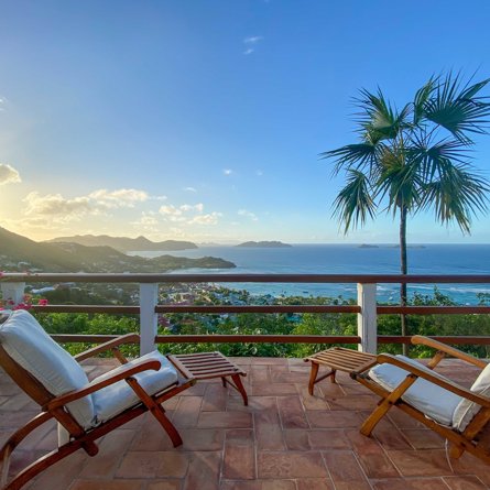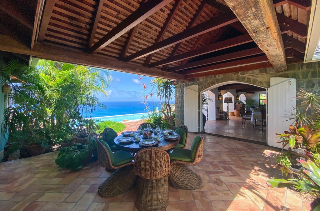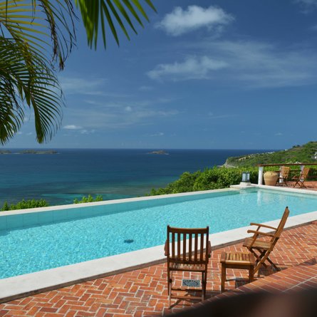 A St. Barths original, Villa Chanticleer features jaw-dropping views over Lorient and old-school Caribbean vibes with three large bedroom bungalows and two smaller attached bedrooms, as well as plenty of activities thanks to a tennis court, a spacious garden, and two pools…a dream villa for a family with teens.