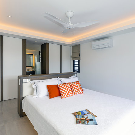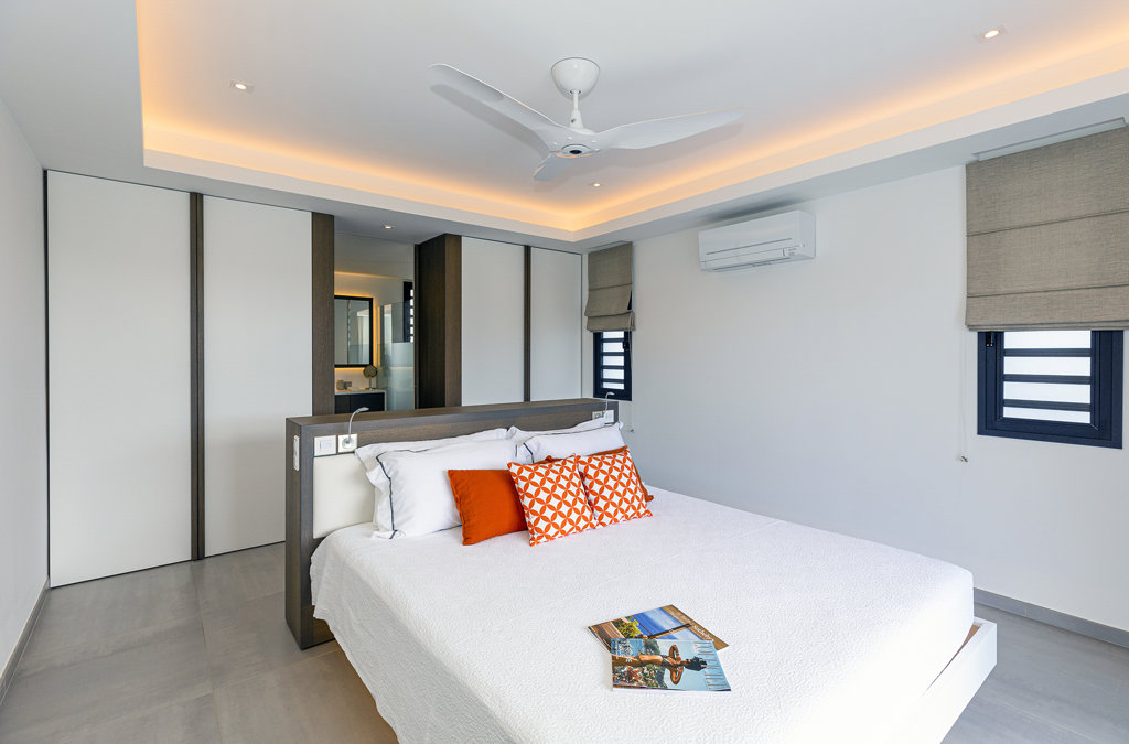 Sea & Garden view, Private terrace, Air conditioning, Fan, Queen size bed, Closet, Desk, Smart TV, Dish, Black out curtains, Mosquito net, Safe.