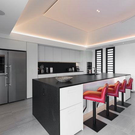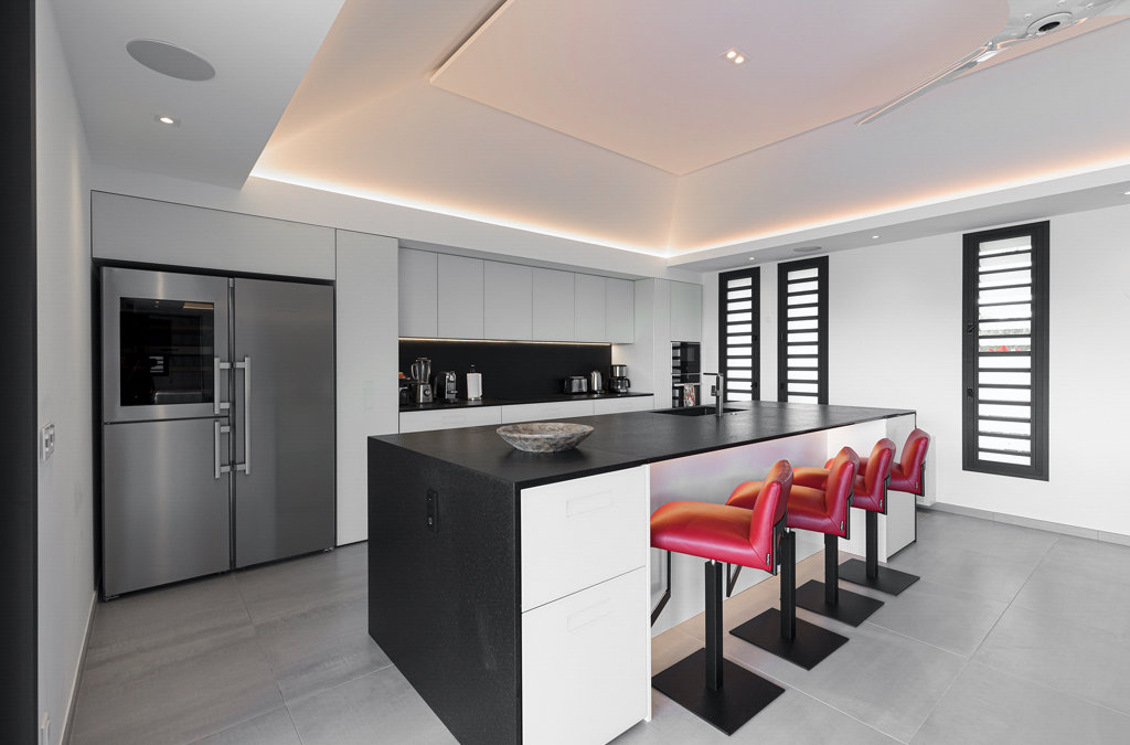 Air conditioning, Fan, Coffee machine, Nespresso machine, Kettle, Fridge, Wine cellar, Electric cooker, Oven, Microwave, Blender, Citrus press, Toaster, Dishwasher, Bar.
