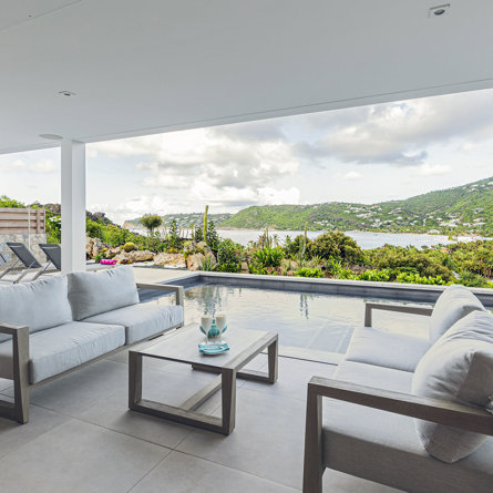 An elegant haven, Villa Dadaye occupies a fully private lot overlooking the gorgeous Lorient Bay — a tremendous value for up to 6.
