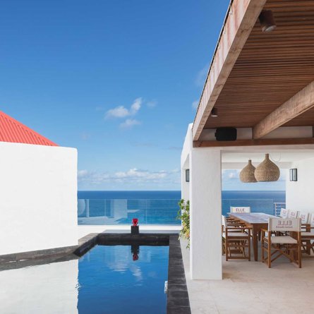 There is something for everyone at Villa Elle, a cool and artistically decorated home with fitness room and theatre room, all spaciously spread over multiple, fully air-conditioned floors with unforgettable sea views and protected from the north-easterly winds.
