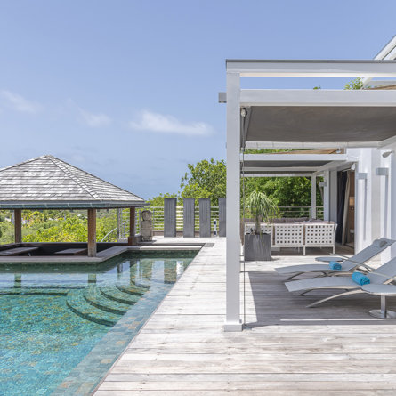 Located minutes from exquisite beaches and elegant shopping in the city centre of Gustavia, the apartment-style Villa Fleur de Cactus embraces island life while offering modern interiors and amenities. Featuring three spacious king bedrooms each with an ensuite bathroom, this fully air-conditioned vacation home boasts brilliant sunset views throughout the winter season.