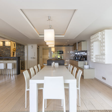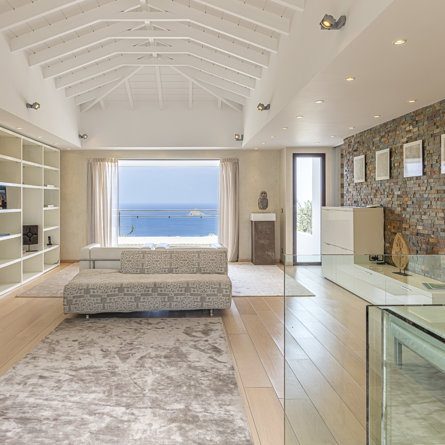 Sea view, Dining table, Heated pool, Sun beds, Sofa, Sound system, Fridge, Barbecue.