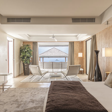 Sea view, Private terrace, Air conditioning, Fan, King size bed, Closet, Desk, TV, Dish, Black out curtains, Safe.