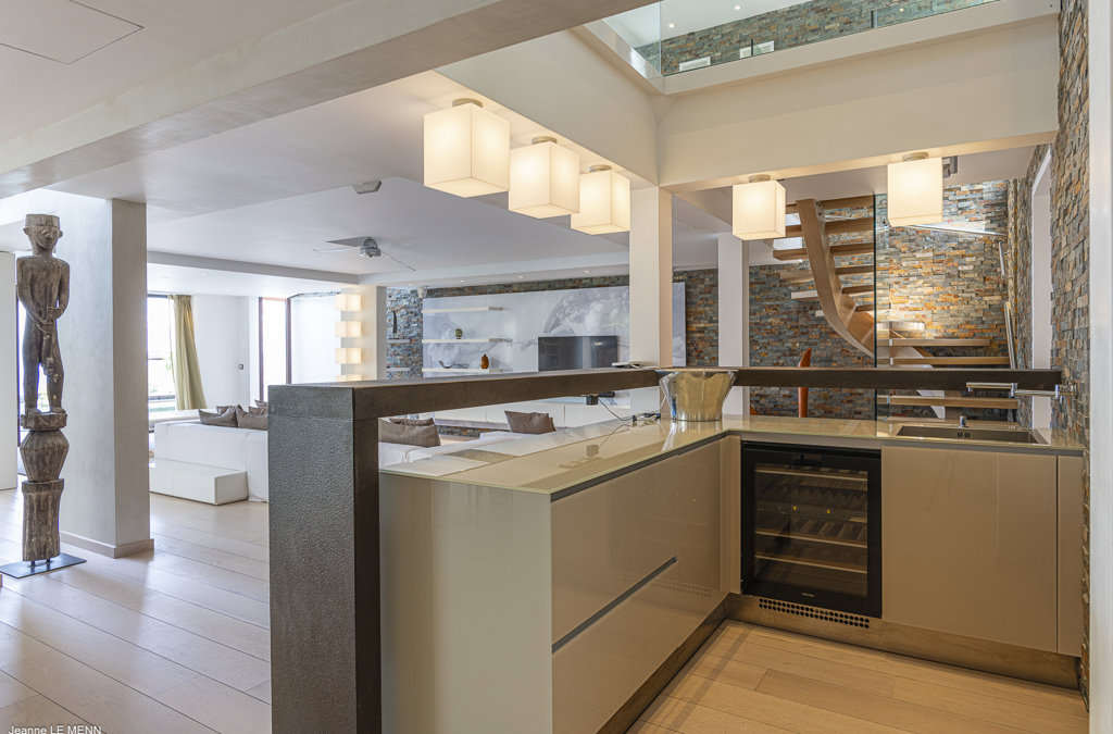 Air conditioning, Fan, Coffee machine, Nespresso machine, Milk foamer, Kettle, Fridge, Wine cellar, Gaz stove, Oven, Microwave, Blender, Citrus press, Toaster, Dishwasher.