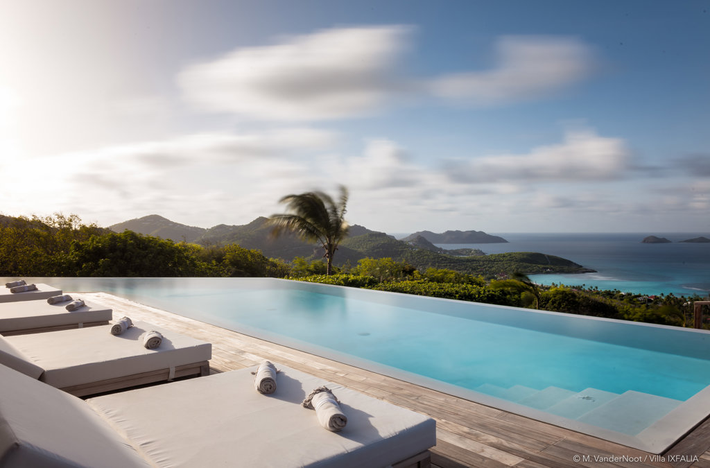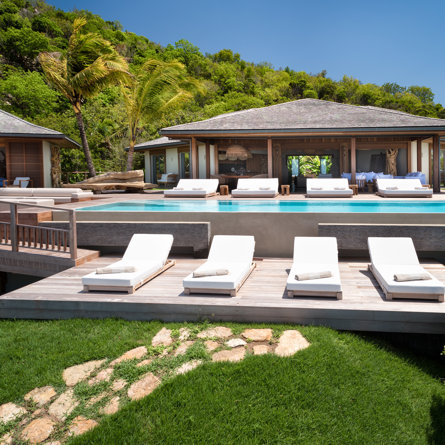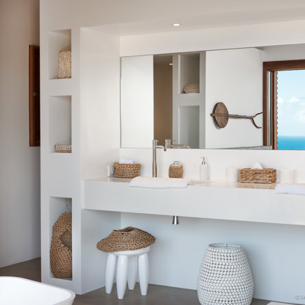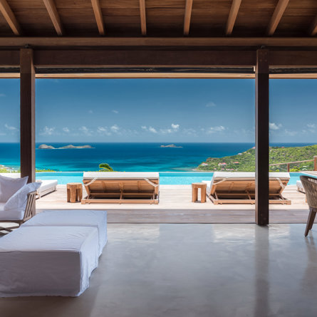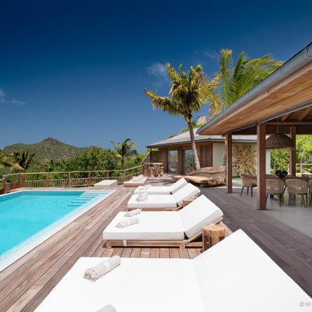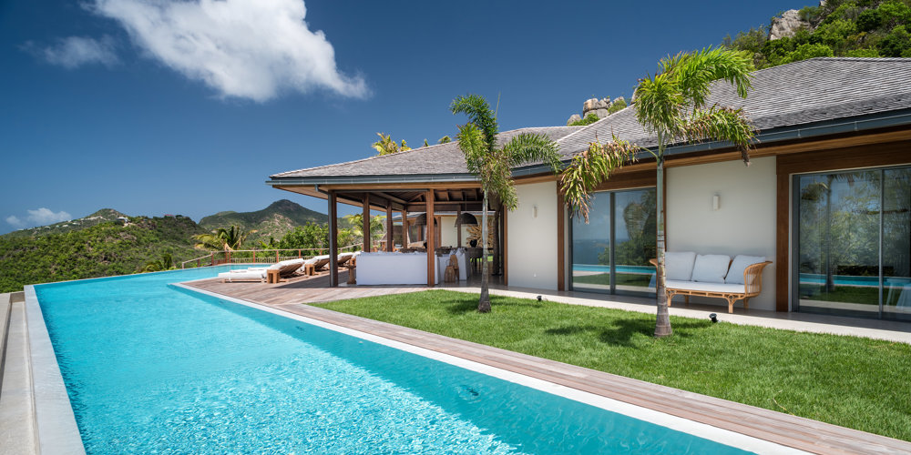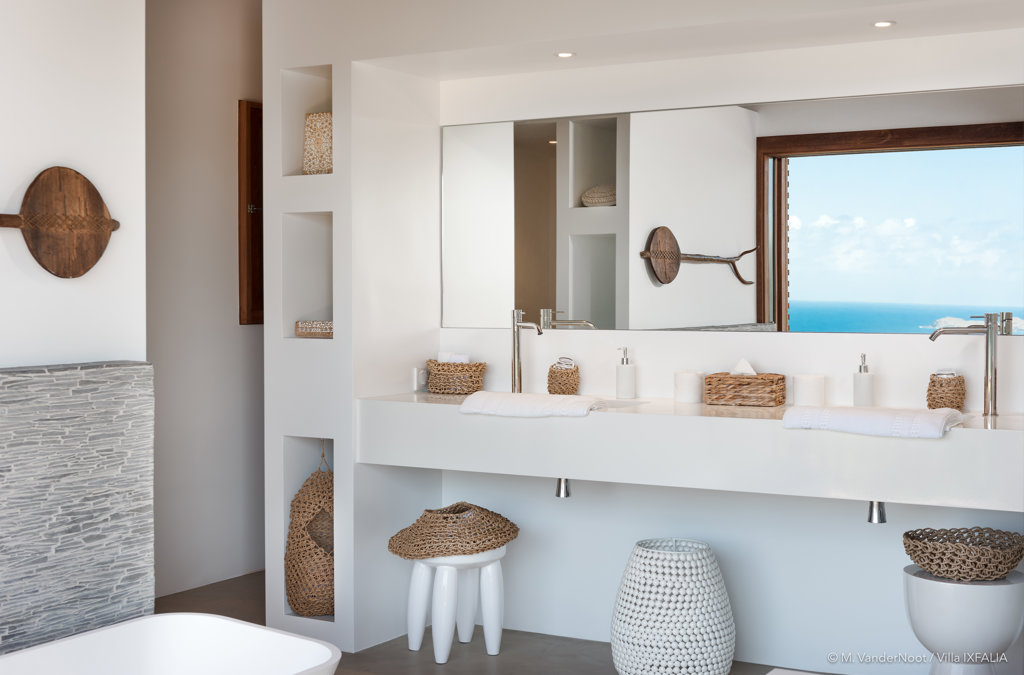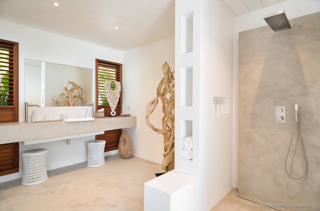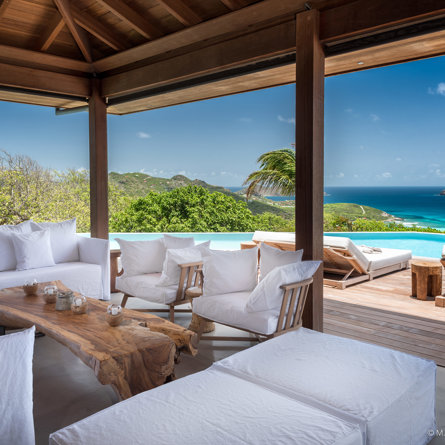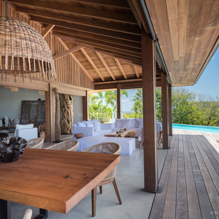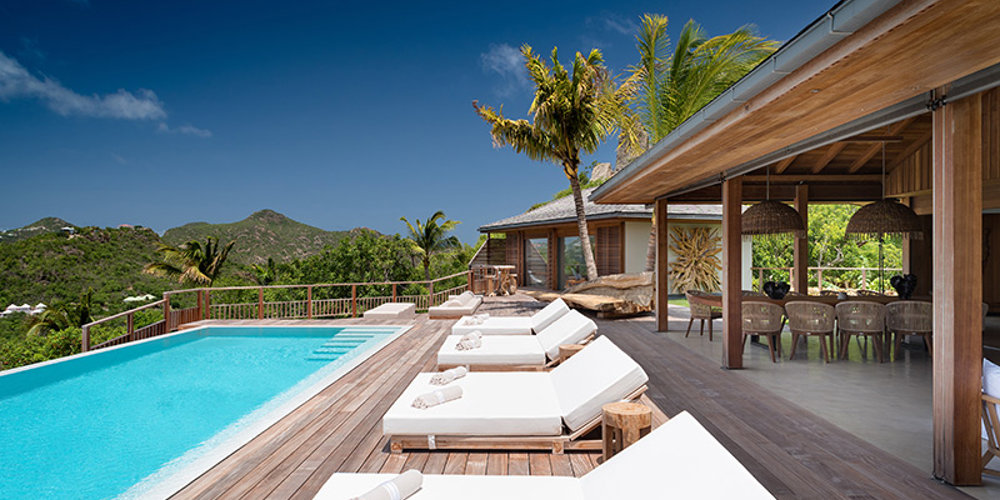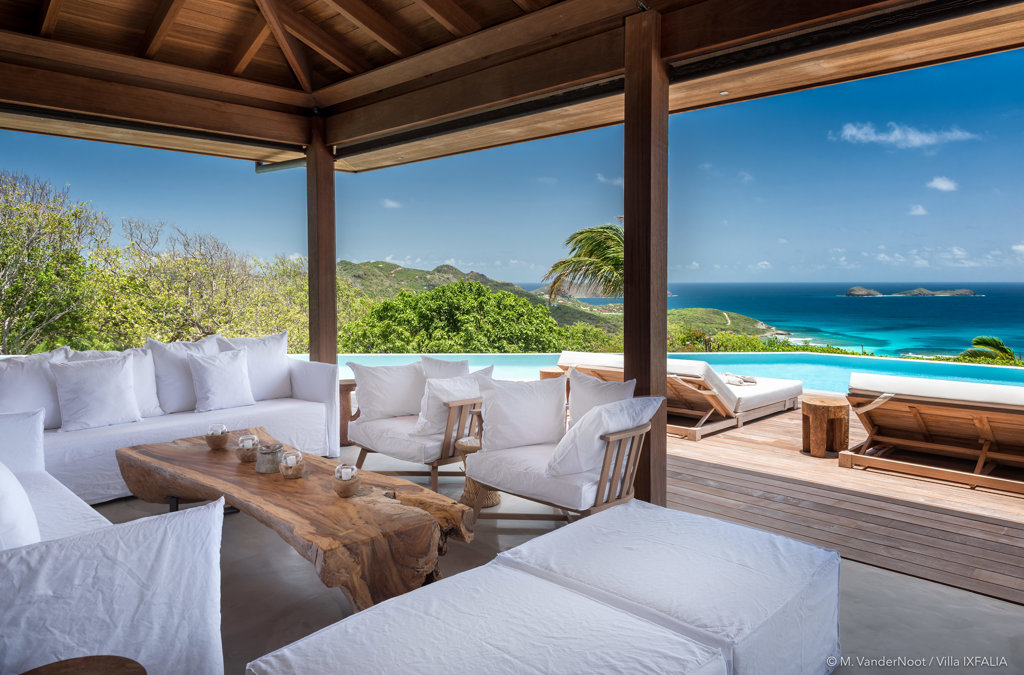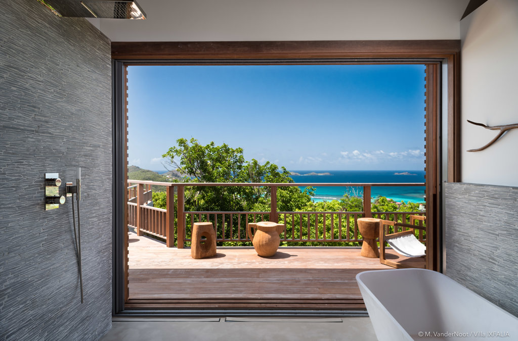 The wide-open African lodge-style Villa Ixfalia is full of personality thanks to its rattan décor and boho-chic vibe, located at the top of St Jean for full privacy and isolation overlooking beautiful Eden Rock – St Barths, with bedrooms with large bathrooms to please even the teenagers in the family.