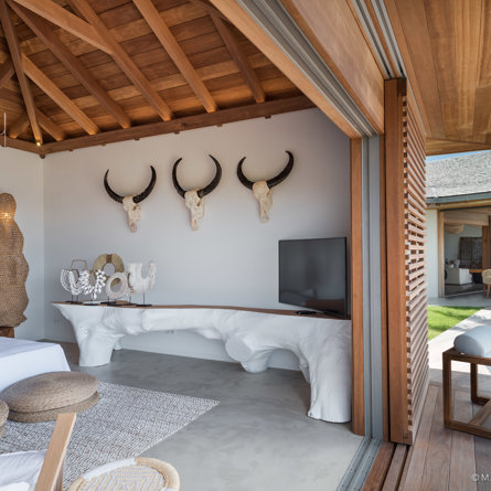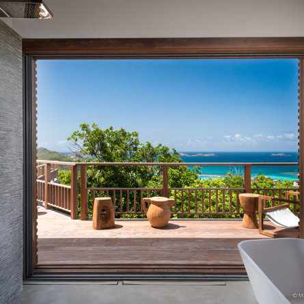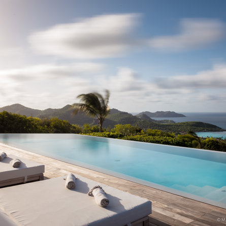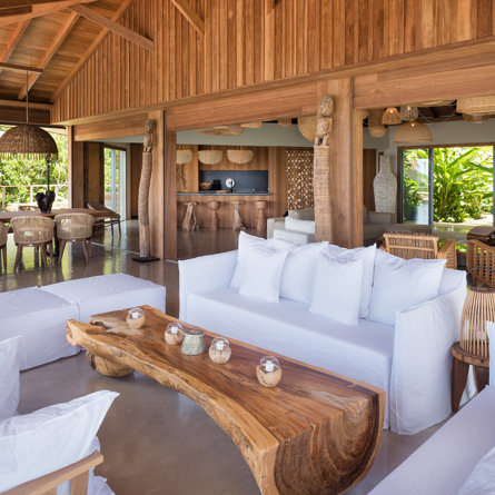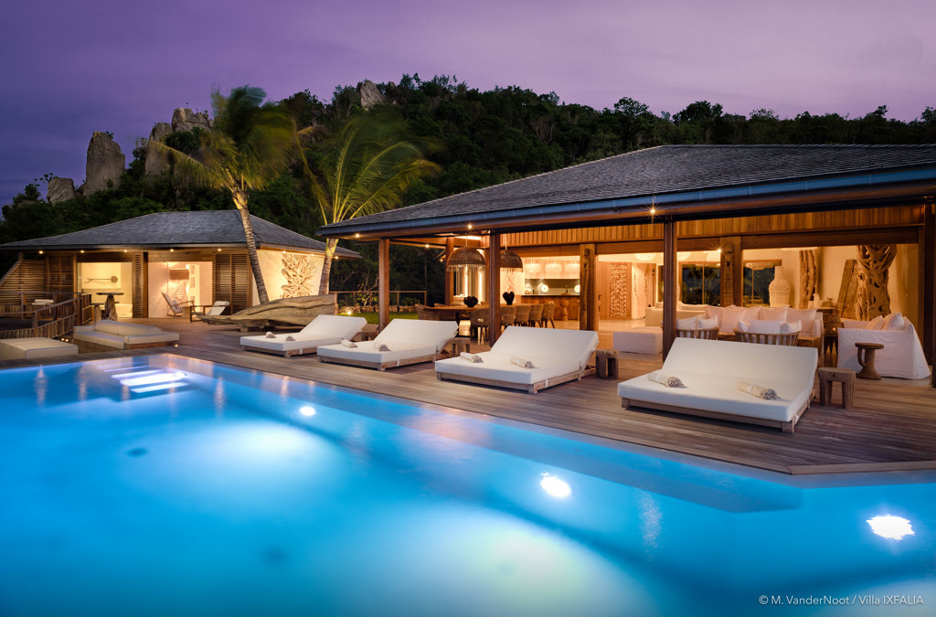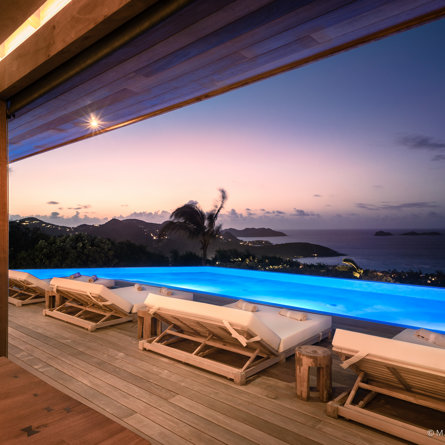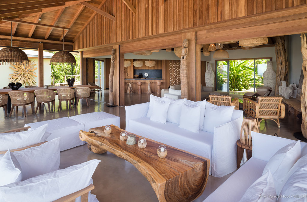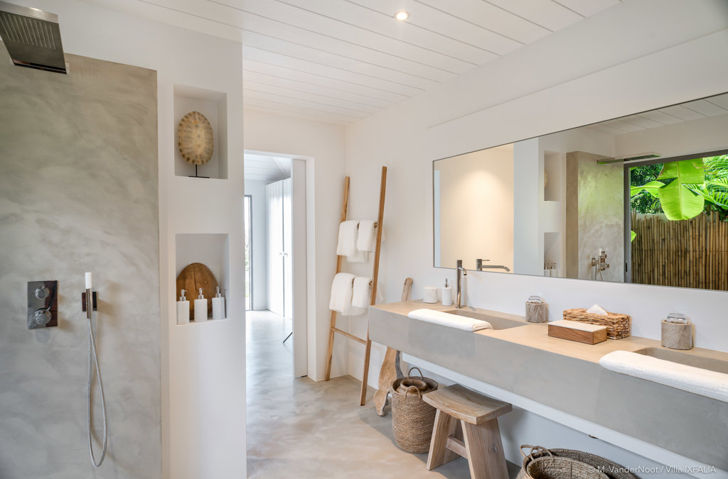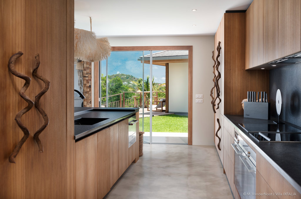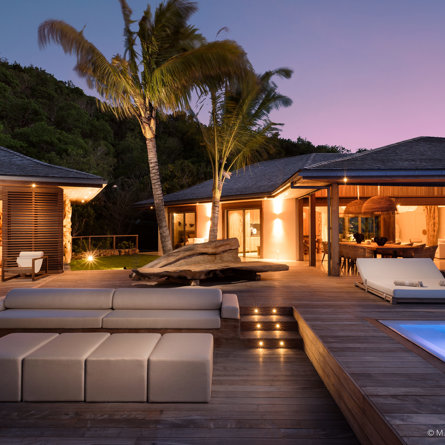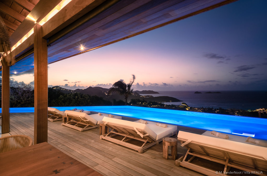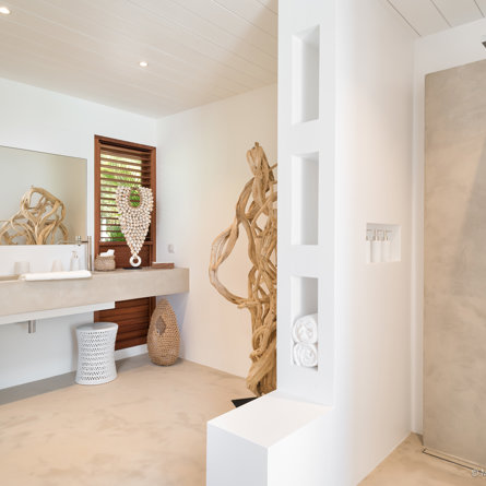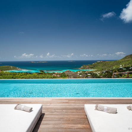 The wide-open African lodge-style Villa Ixfalia is full of personality thanks to its rattan décor and boho-chic vibe, located at the top of St Jean for full privacy and isolation overlooking beautiful Eden Rock – St Barths, with bedrooms with large bathrooms to please even the teenagers in the family.