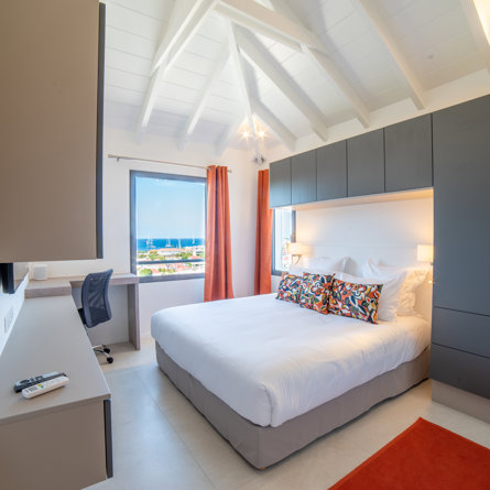 Partial sea view, Private terrace, Air conditioning, King size bed or twin beds, Closet, TV, Safe.