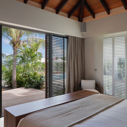 Garden view, Air conditioning, Queen size bed or twins beds, Closet, Desk, Smart TV, Dish, Apple TV, Black out curtains, Minibar, Safe.