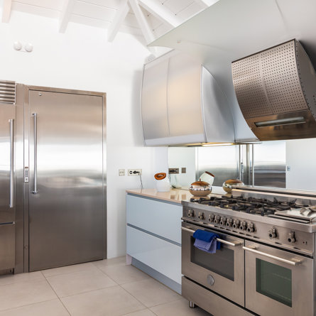 Nespresso machine, Fridge, Wine cellar, Gas stove, Oven, Microwave, Blender, Citrus press, Toaster, Dishwasher, Fan.