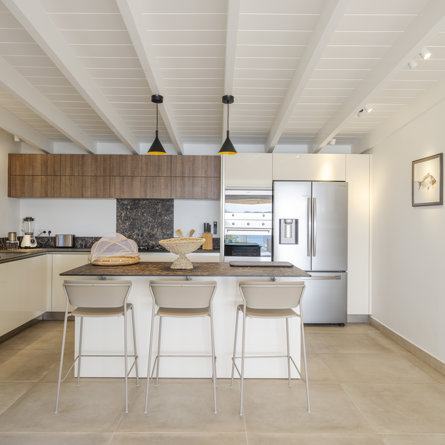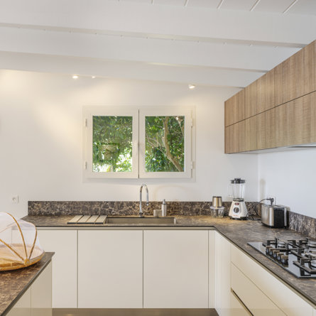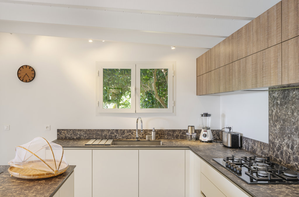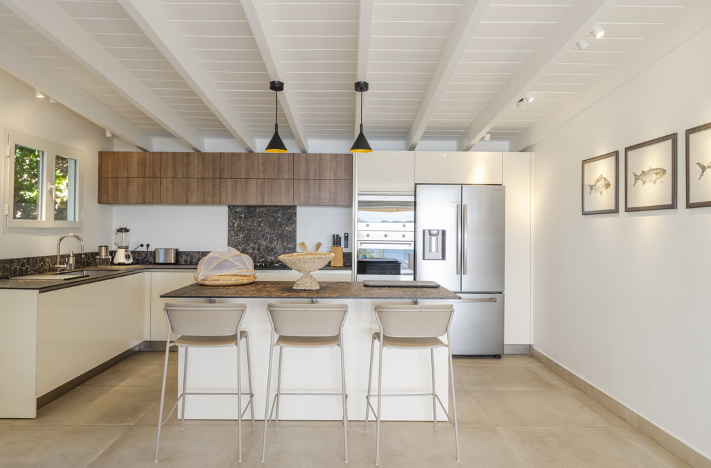 Air conditioning, Coffee machine, Nespresso machine, Milk foamer, Kettle, Fridge, Wine cellar, Ice machine, Gas stove, Oven, Microwave, Blender, Citrus press, Toaster, Dishwasher, Bar.
