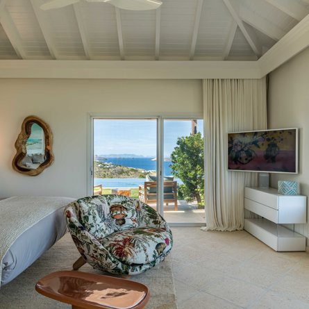 Sea & Garden view, Terrace, Air conditioning, Fan, King size bed, Walk-in closet, Desk, Smart TV, Dish, Apple TV, Netflix, Sound system, Black out curtains, Safe.