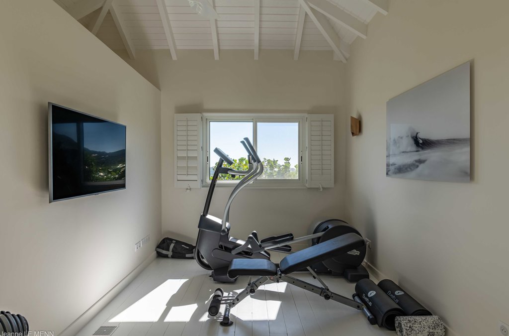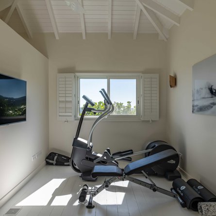 Air conditioning, Treadmill, Elliptical bike, Weight bench, Kettlebell, Weights.