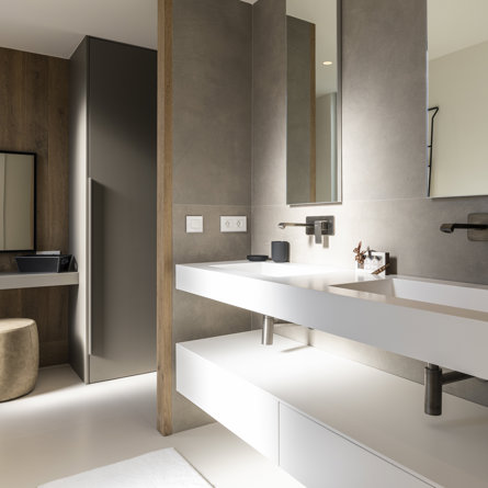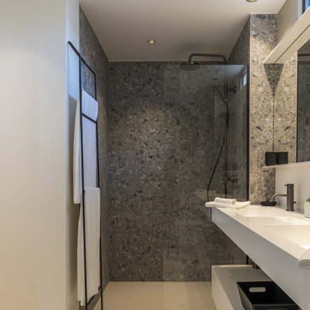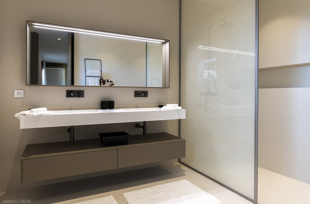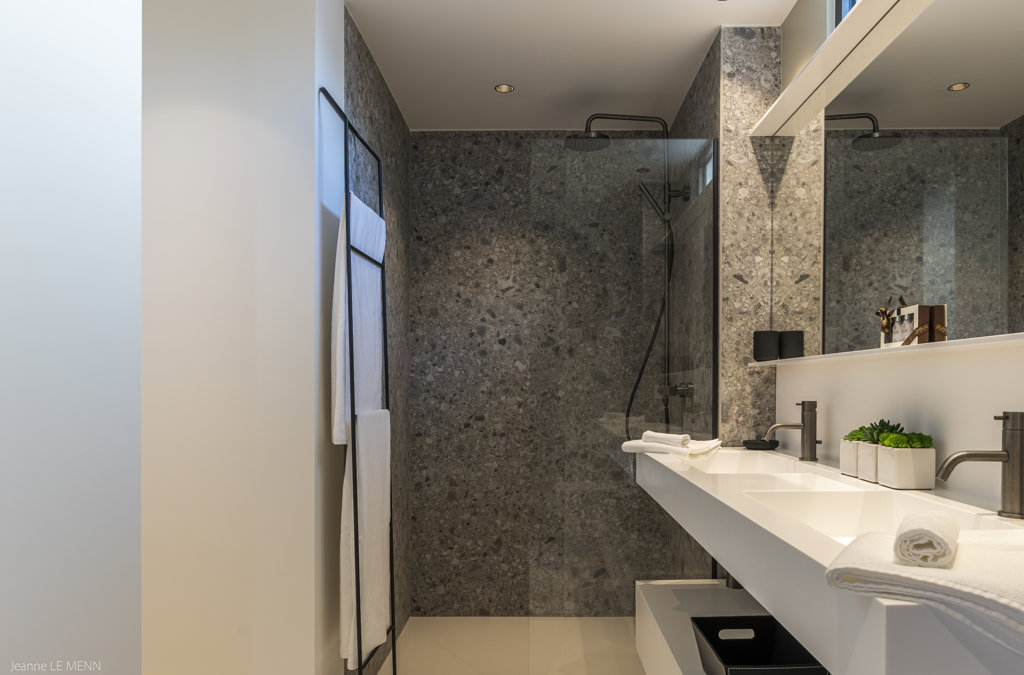 Ensuite bathroom, Walk-in shower, Two sinks, Hair dryer, Close toilet.
