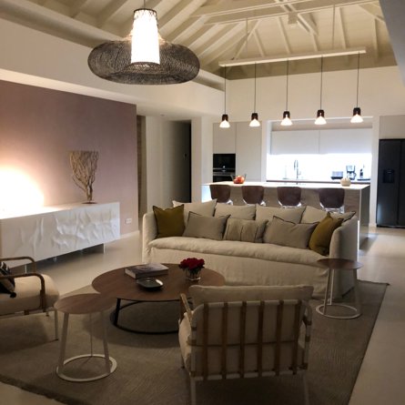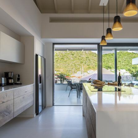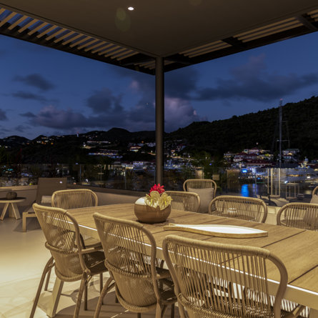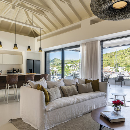 The vibrant Gustavia shopping and restaurant scene are minutes from your door at the spacious Prestige Apartment, boasting plush interiors and an expansive terrace in a luxury complex that is perfect for families.
