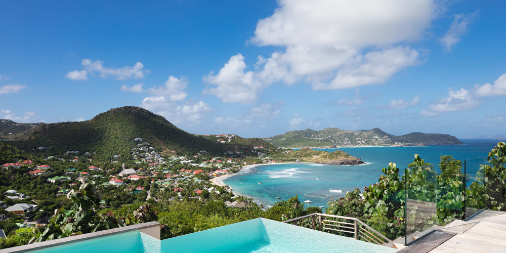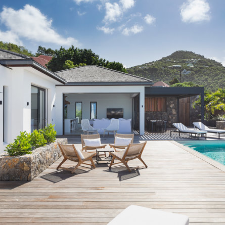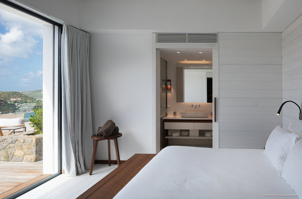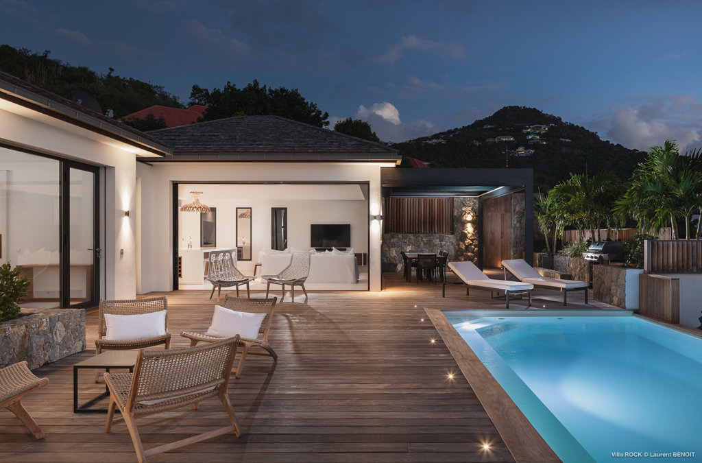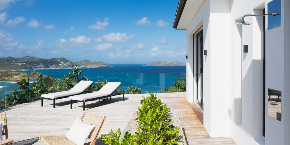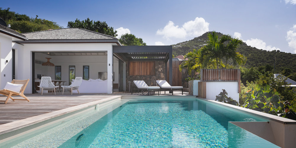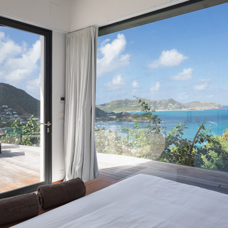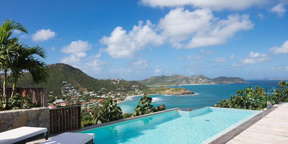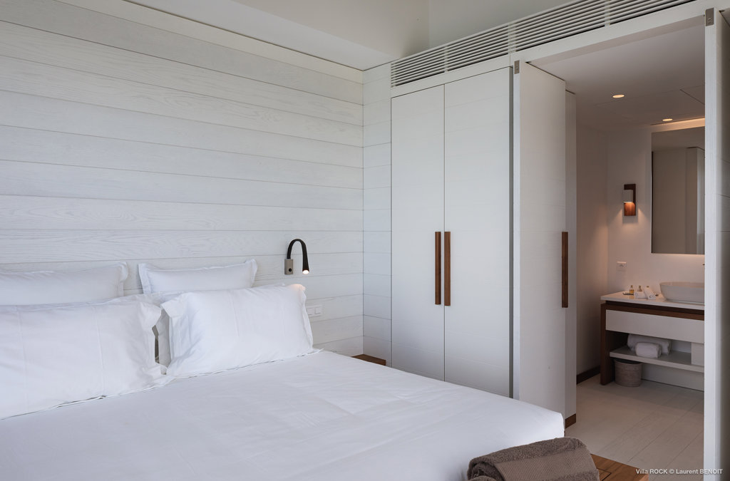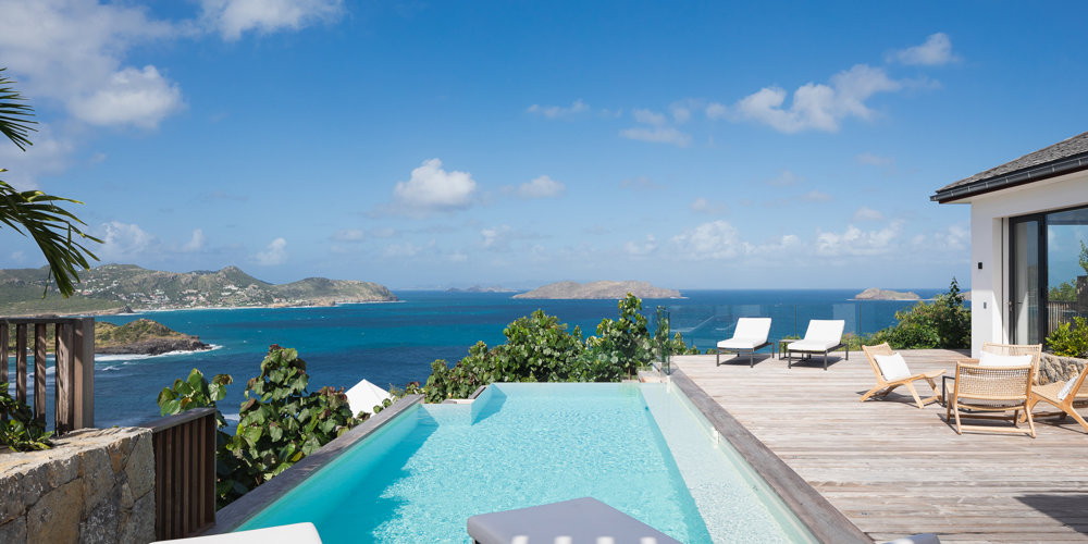The petite Villa Rock is set high on a hill above Lorient, featuring a refined, Hamptons style décor with equal-sized bedrooms, lots of natural light and a very large pool deck overlooking the dazzling sea view.