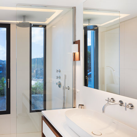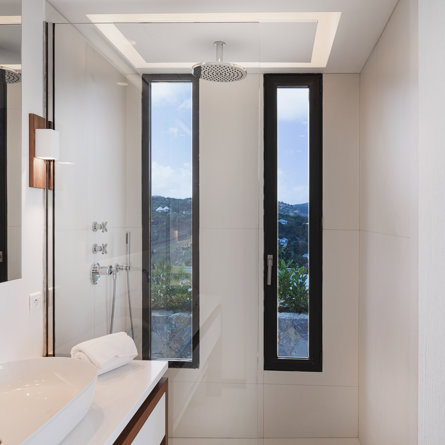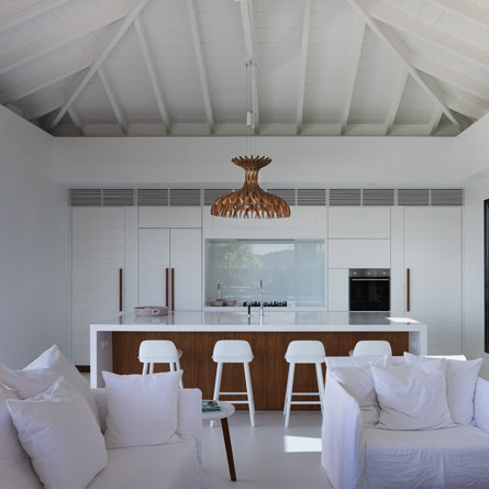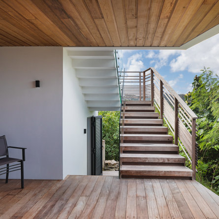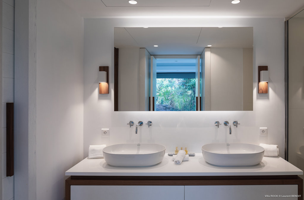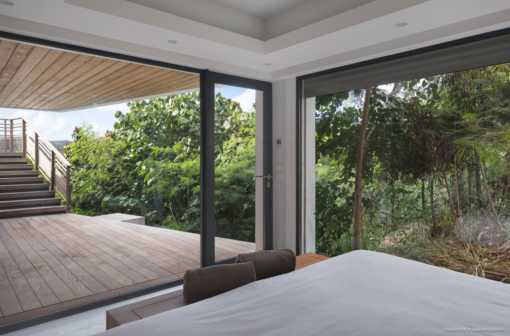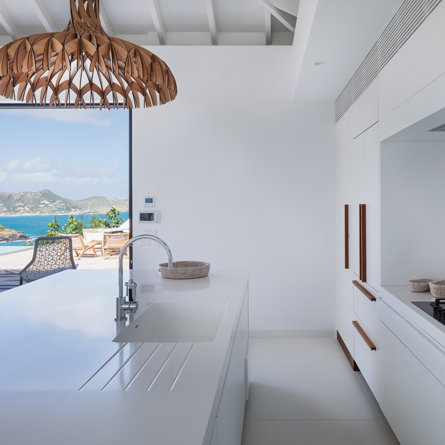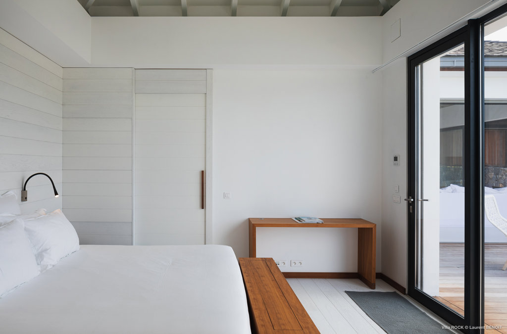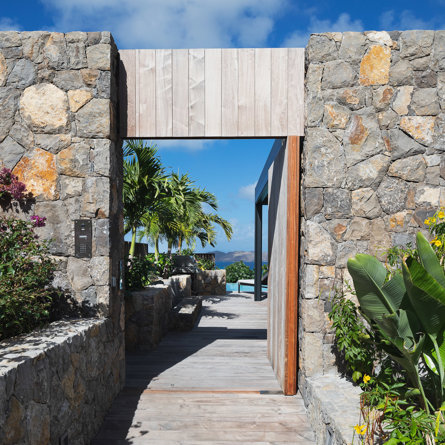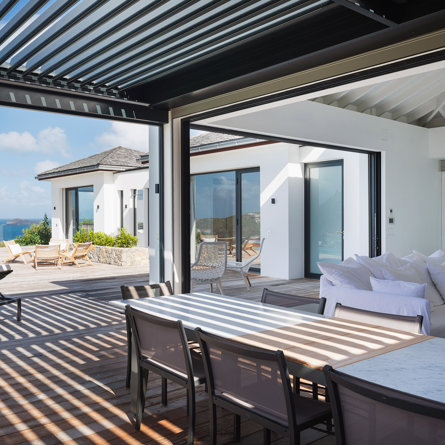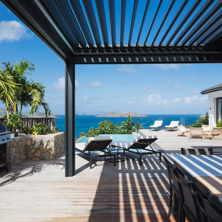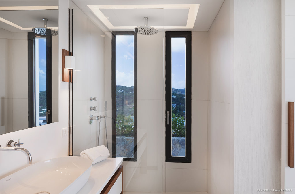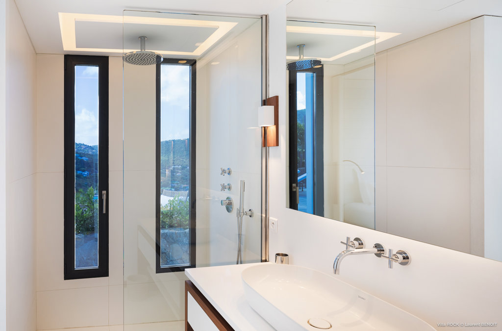 The petite Villa Rock is set high on a hill above Lorient, featuring a refined, Hamptons style décor with equal-sized bedrooms, lots of natural light and a very large pool deck overlooking the dazzling sea view.