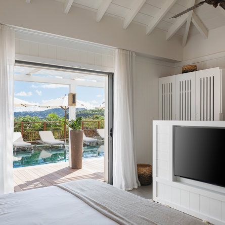 Sea view, Terrace, Air conditioning, Queen size bed, Closet, Smart TV, Apple TV, Netflix, Black out curtains, Safe. Ensuite bathroom, Walk-in shower, Two sinks, Hair dryer, Open toilet.