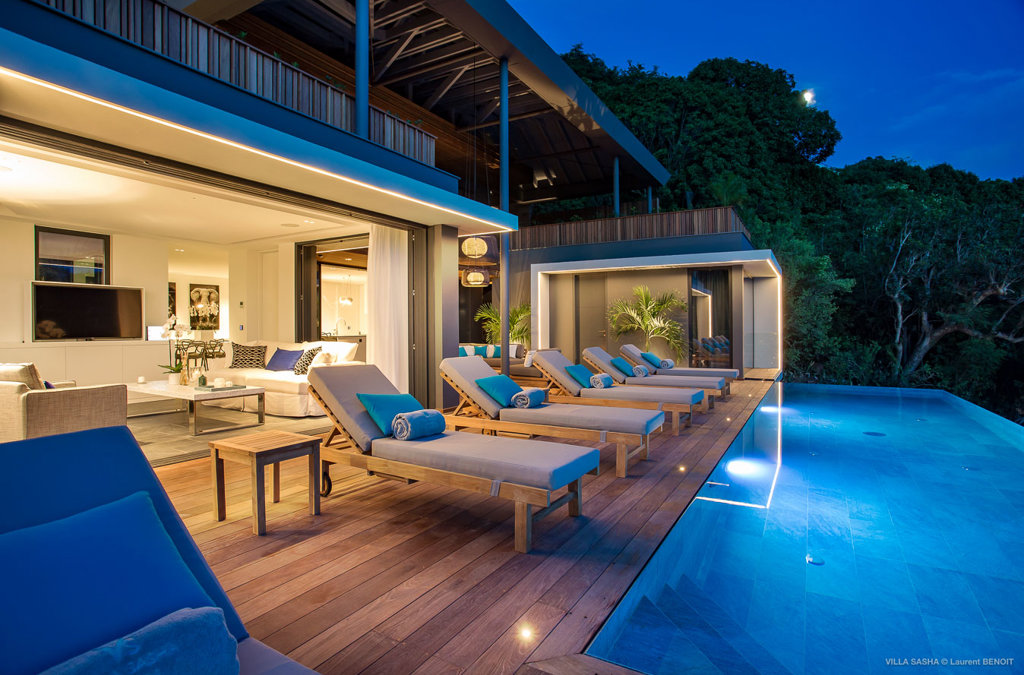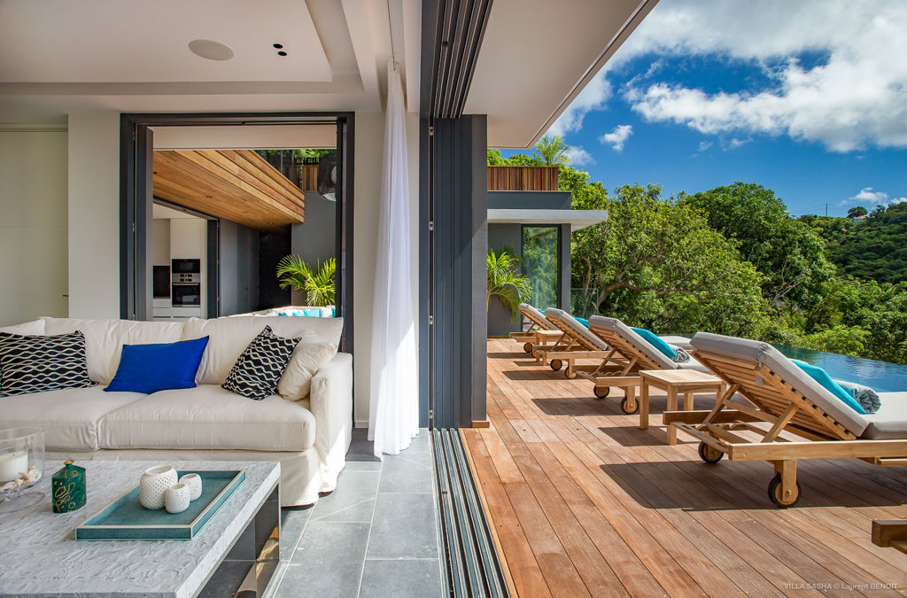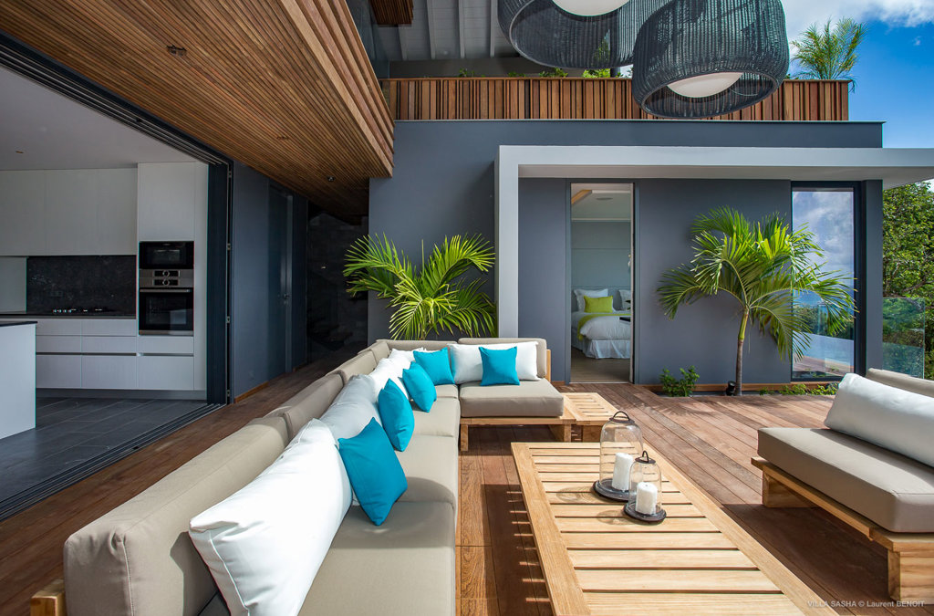Villa Sasha is located in the village of Corossol, spanning over multiple levels, and is a very modern home for friends or family offering large, equal-size bedrooms, several private outdoor nooks for relaxation and partial views over Corossol Bay.