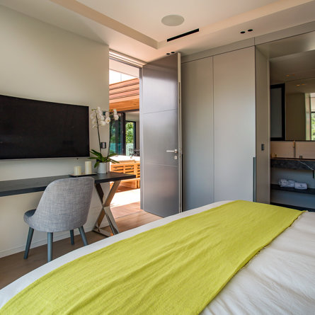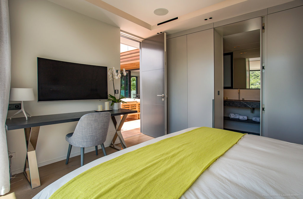 Sea view, Air conditioning, Queen size bed, Walk-in closet, Desk, Apple TV, Black out curtains, Safe.