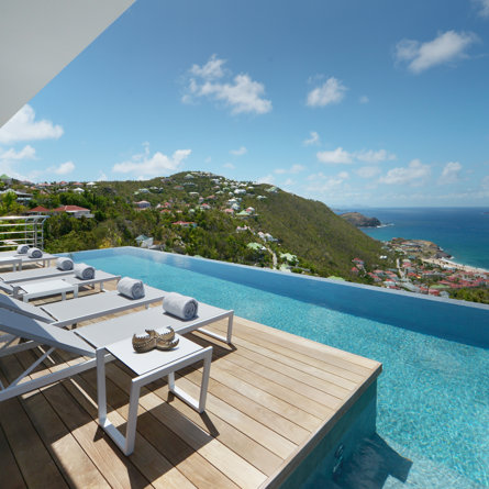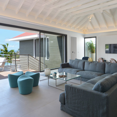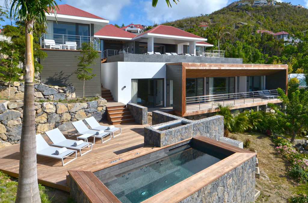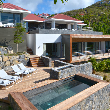 A great value for the amount of space, Villa The Source is ideal for a large group of friends, featuring six equal-size bedrooms, a jacuzzi, air conditioning throughout and remarkable views over Flamands.
