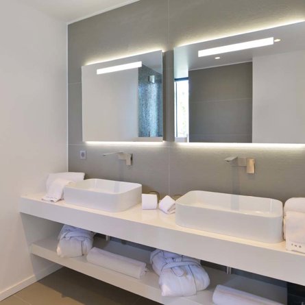 Ensuite bathroom, Walk-in shower, Two sinks, Close toilet.