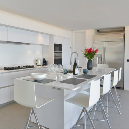 Air conditioning, Coffee machine, Nespresso machine, Milk foamer, Kettle, Fridge, Wine cellar, Ice machine, Gas stove, Oven, Microwave, Blender, Toaster, Dishwasher.