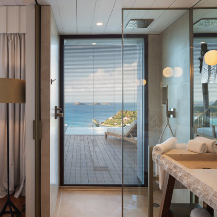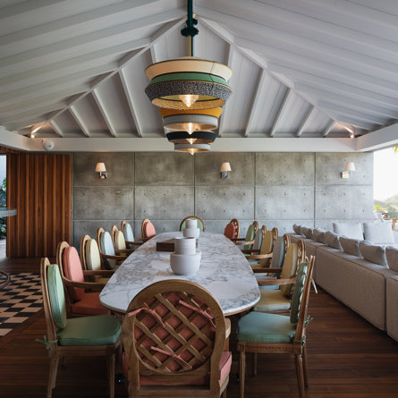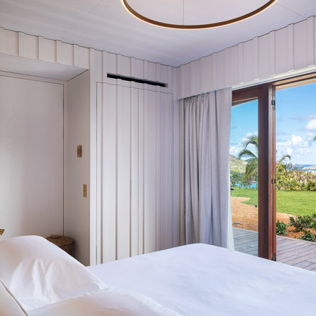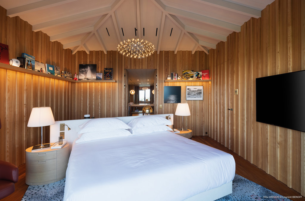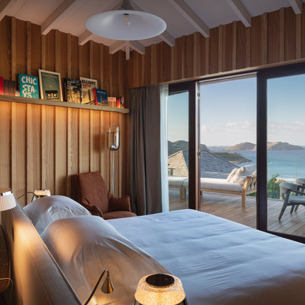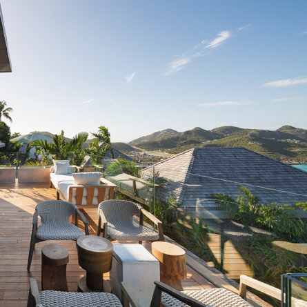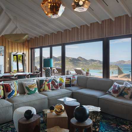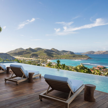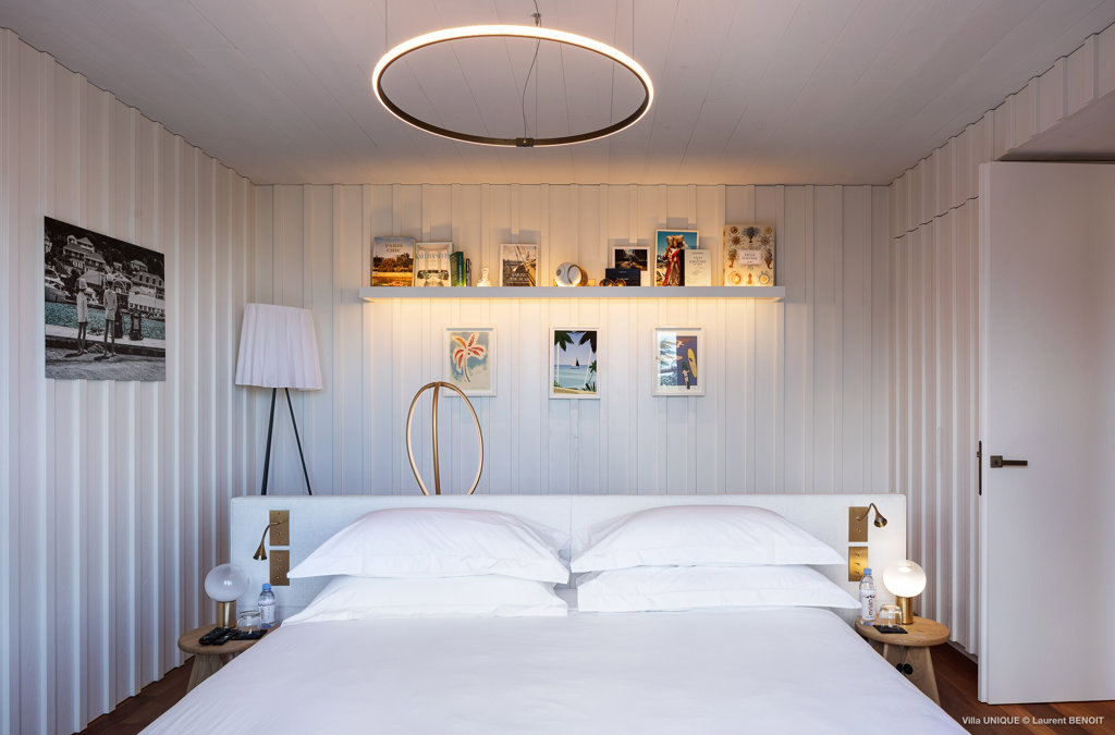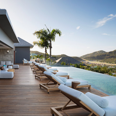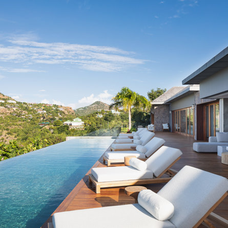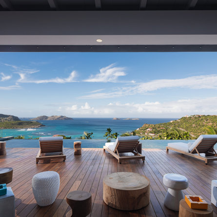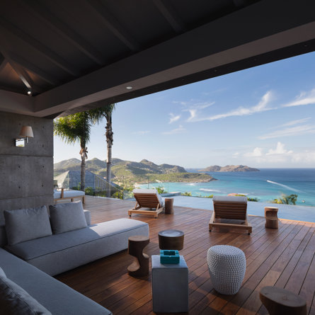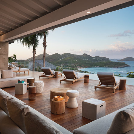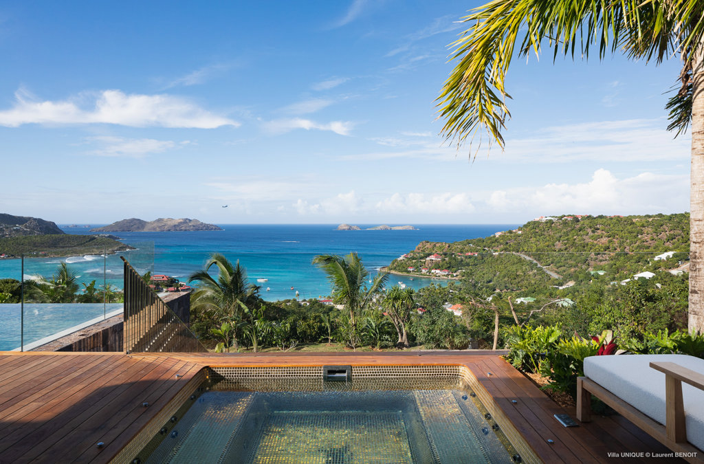 Philippe Starck designed St Jean’s Villa Unik as a modern vacation home for a group of friends or multigenerational family thanks to ten bedrooms and three distinct blocks for both spaciousness and privacy, a theatre room and fitness area, while its hillside location offers pristine views over St Jean Bay and Eden Rock – St Barths, which is only a short distance away.