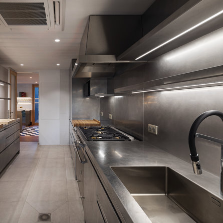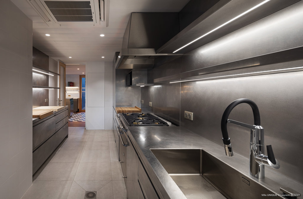 Back Kitchen Stove with oven, large fridges, sink, plancha.