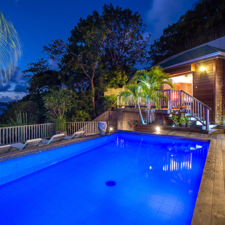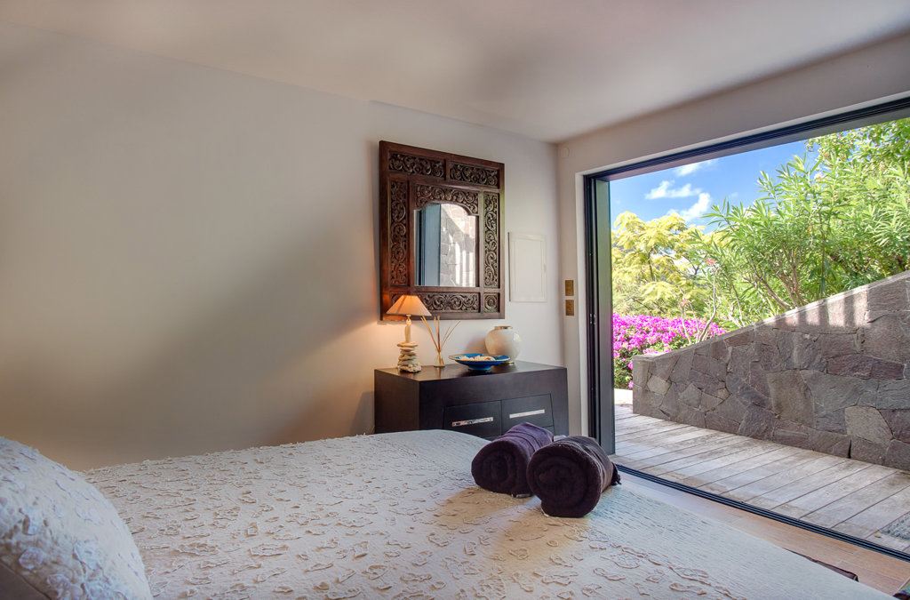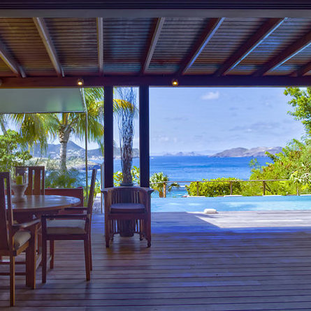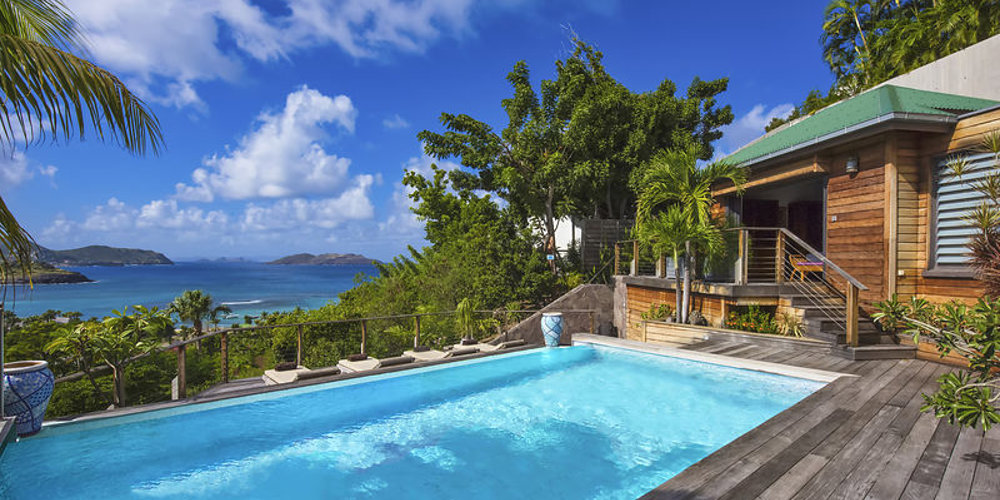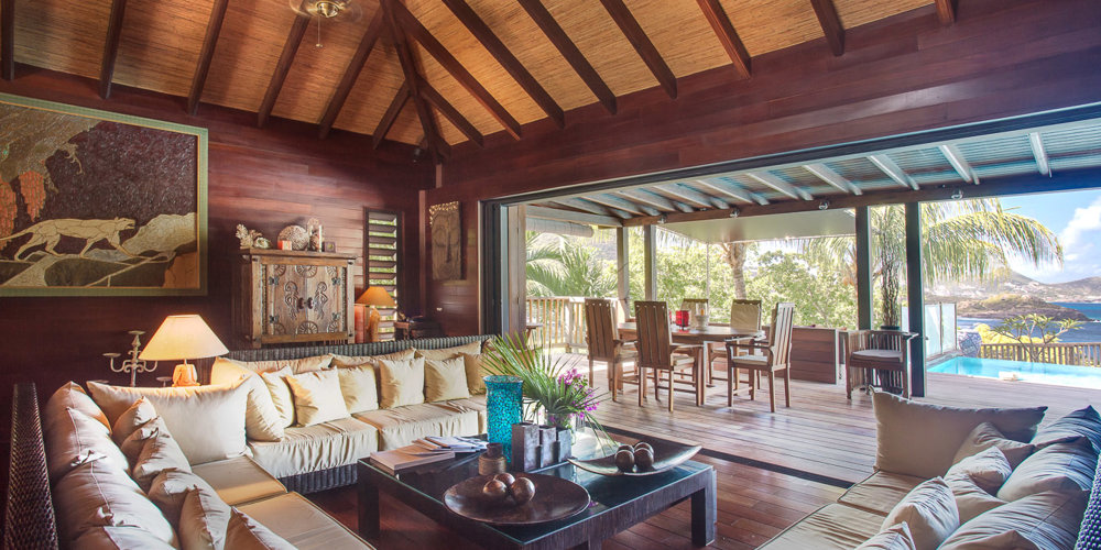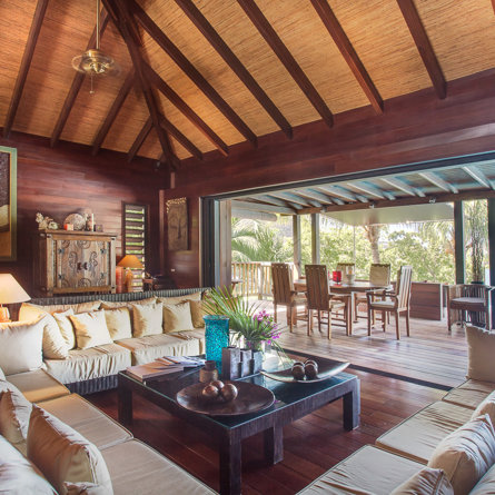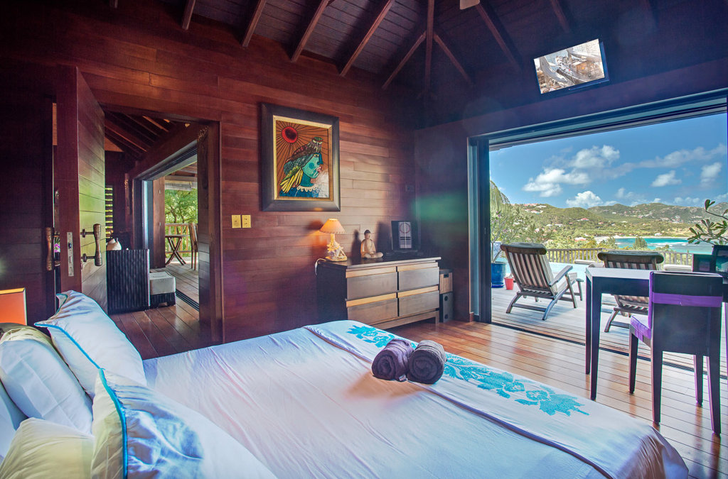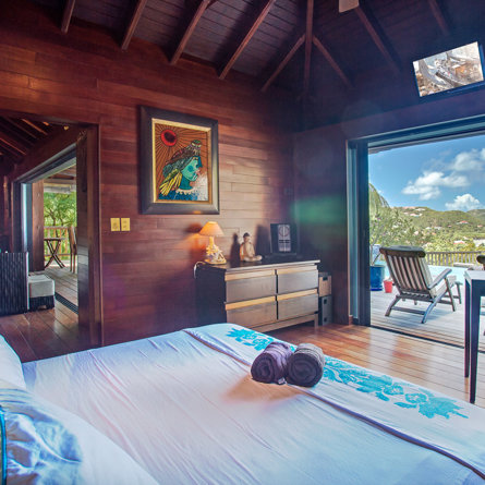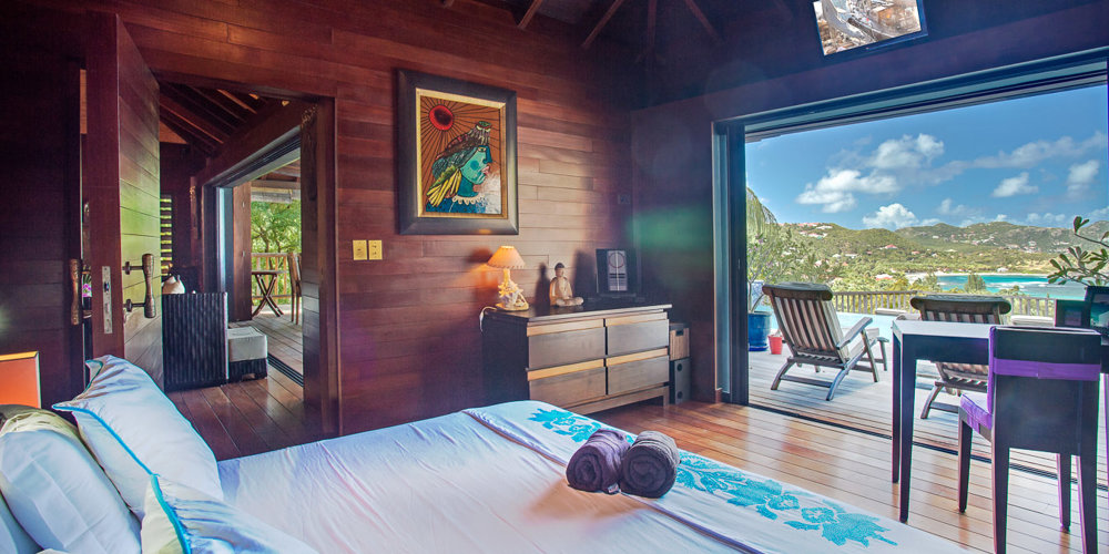 Located on the hill of Camaruche, 3 minutes from the beach, with a stunning view over Lorient Bay and beautiful sunsets, this villa finished in exotic wood throughout and a distinctive style inspired by exotic Bali offers a warm atmosphere that is at one with its natural surroundings. The villa has plenty of space on the multi levelled terraces for guests to seek out their own privacy and two of the bedrooms are in separate cottages.
