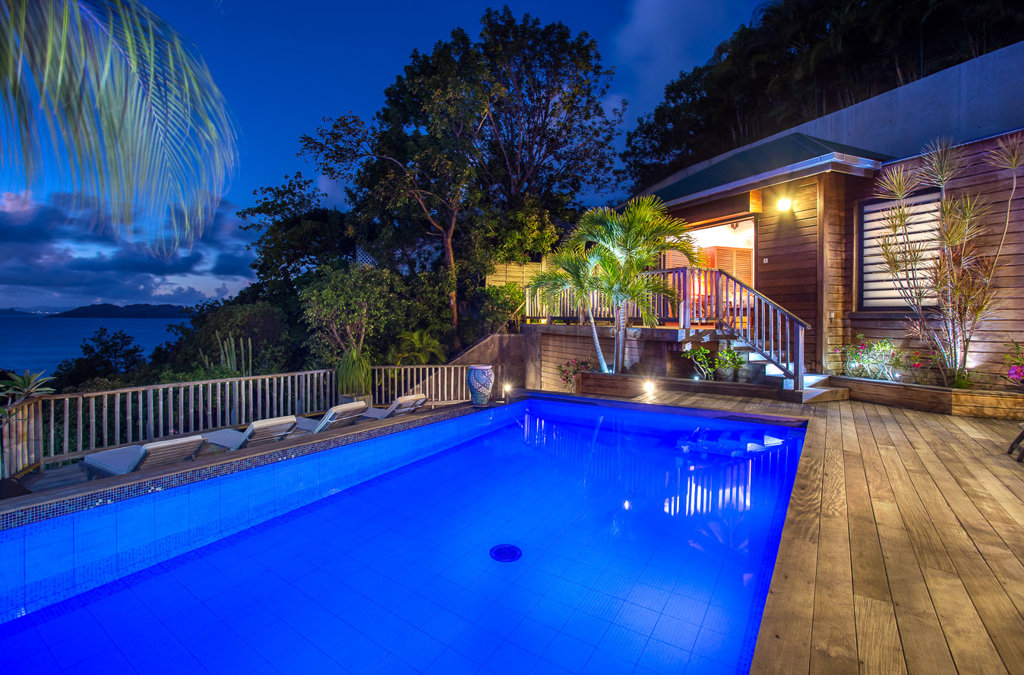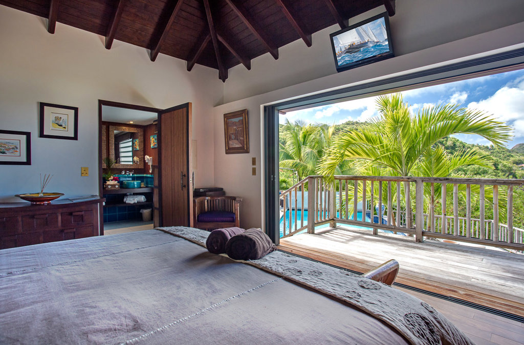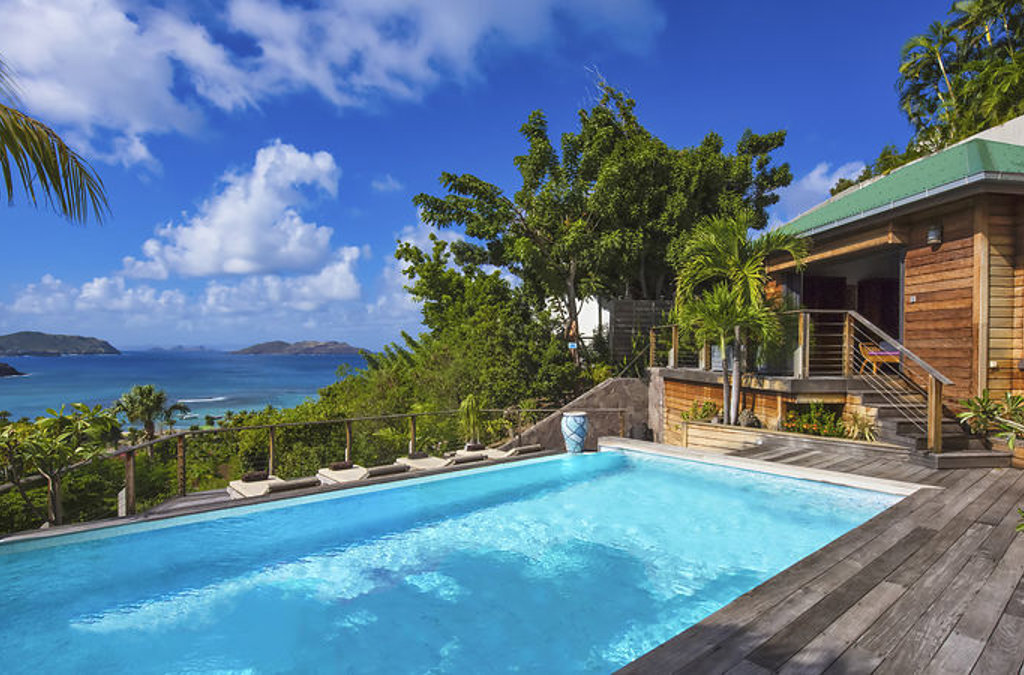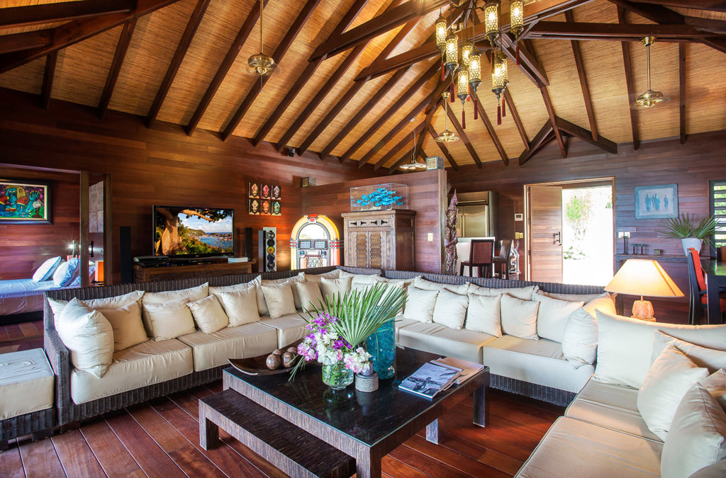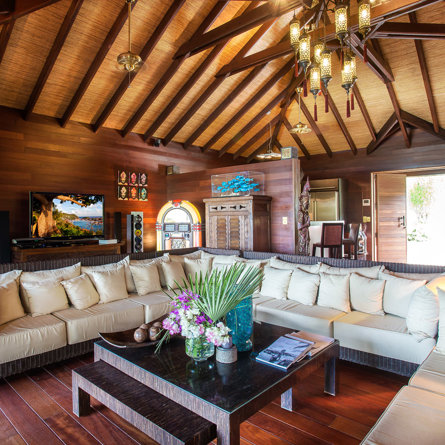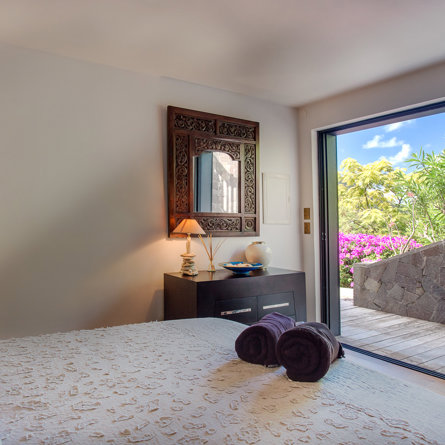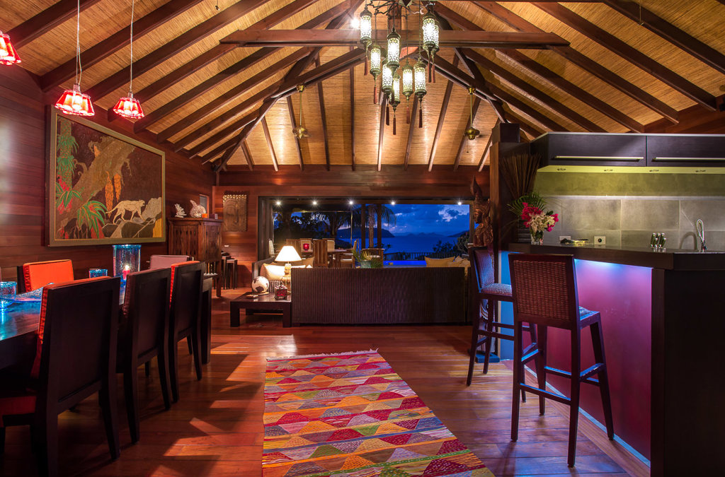 Located on the hill of Camaruche, 3 minutes from the beach, with a stunning view over Lorient Bay and beautiful sunsets, this villa finished in exotic wood throughout and a distinctive style inspired by exotic Bali offers a warm atmosphere that is at one with its natural surroundings. The villa has plenty of space on the multi levelled terraces for guests to seek out their own privacy and two of the bedrooms are in separate cottages.