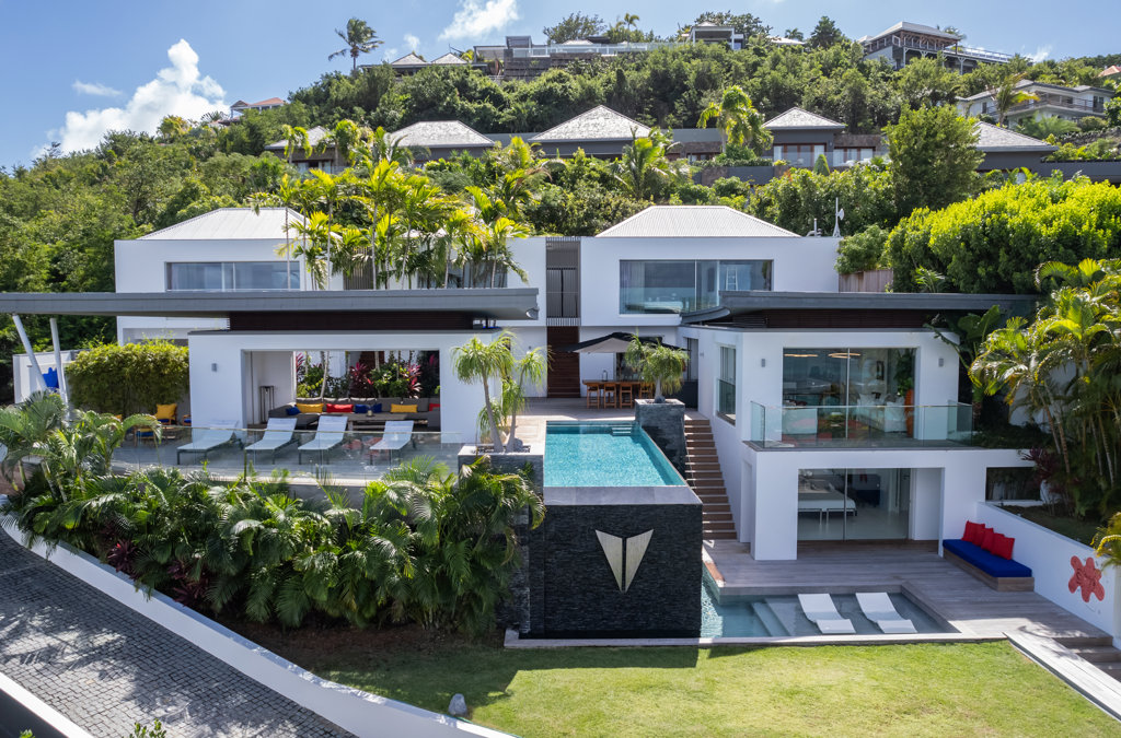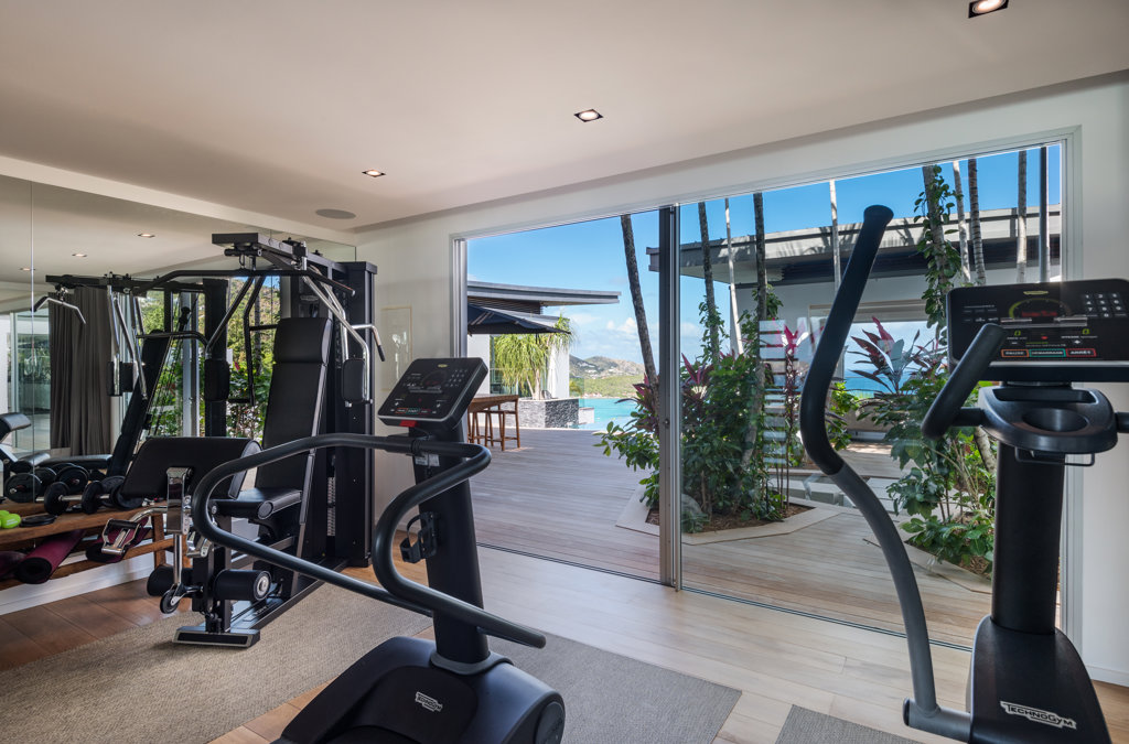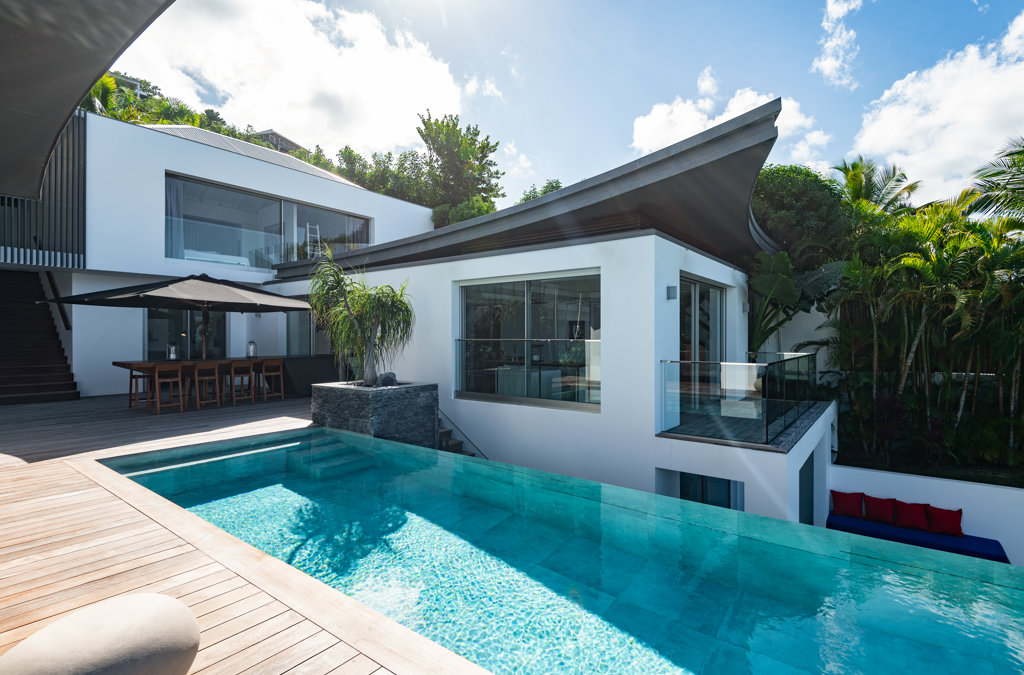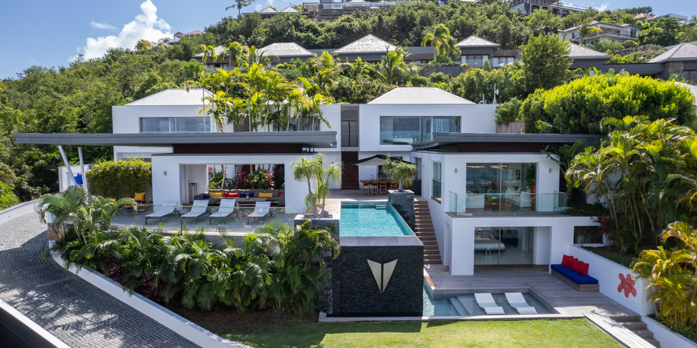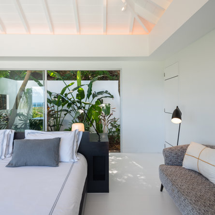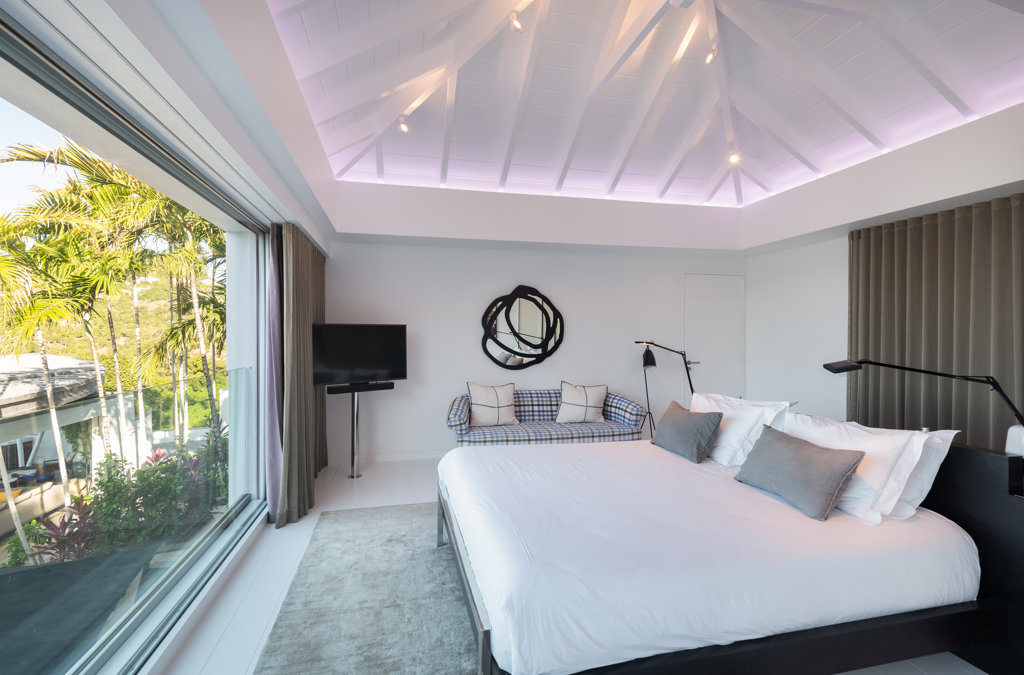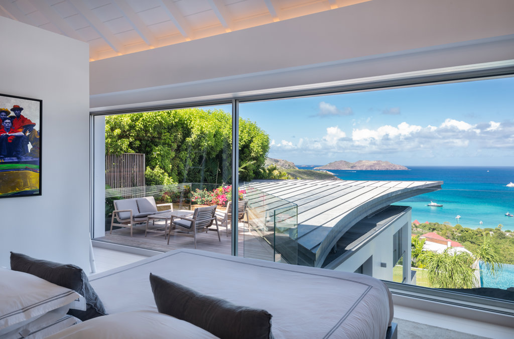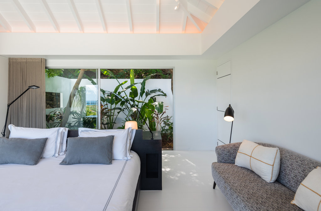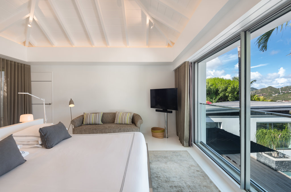 Friends travelling together will love Villa Wings’ prime location in St Jean, within walking distance to Eden Rock – St Barths, featuring four equal-size bedrooms accessed by stairs only in an open and ultra-modern design that also offers a TV room, a fitness area, and picturesque views over the bay.