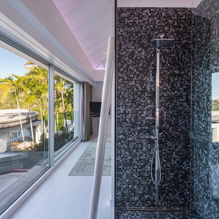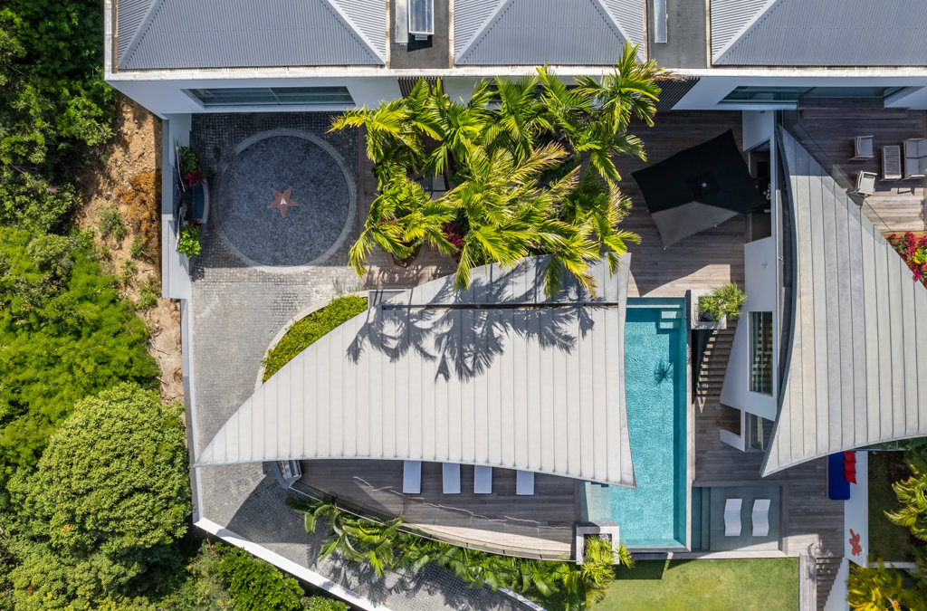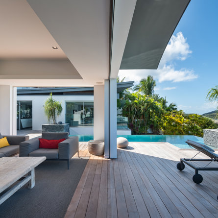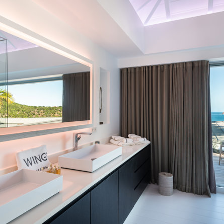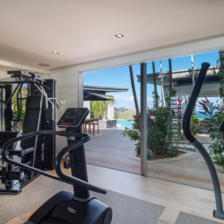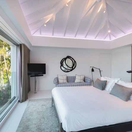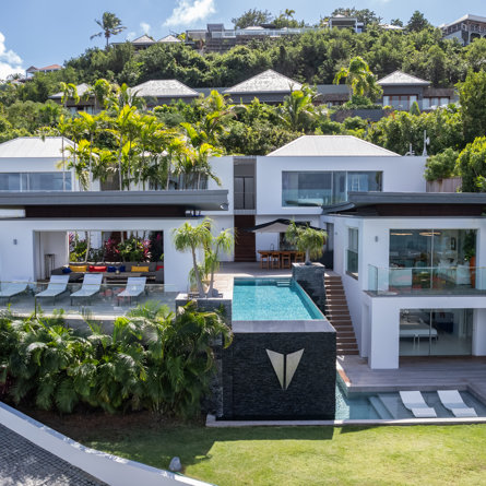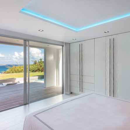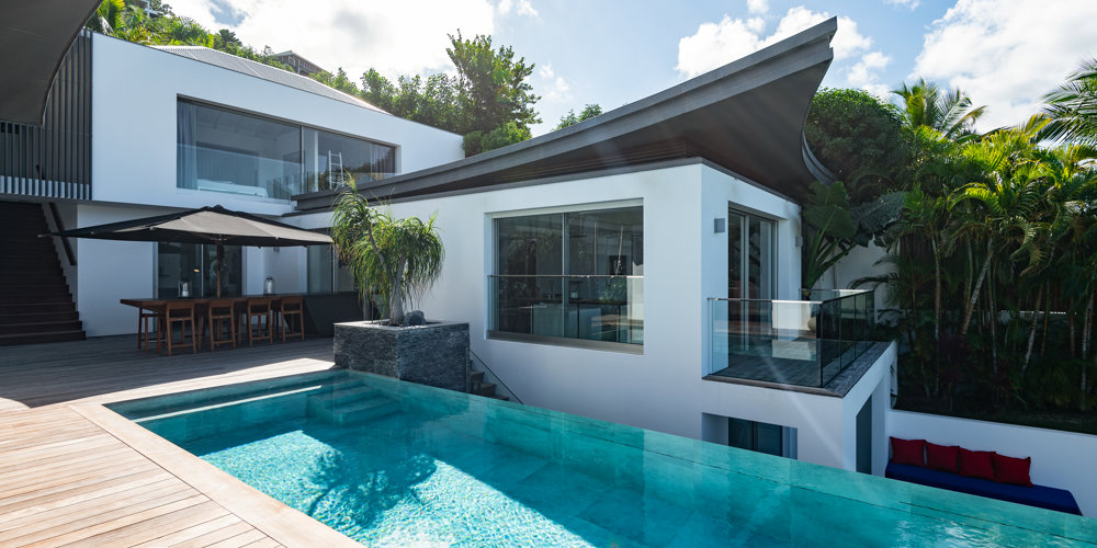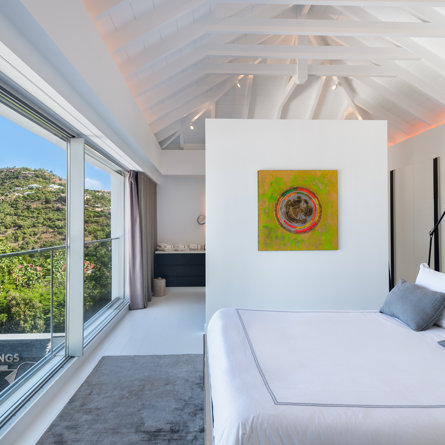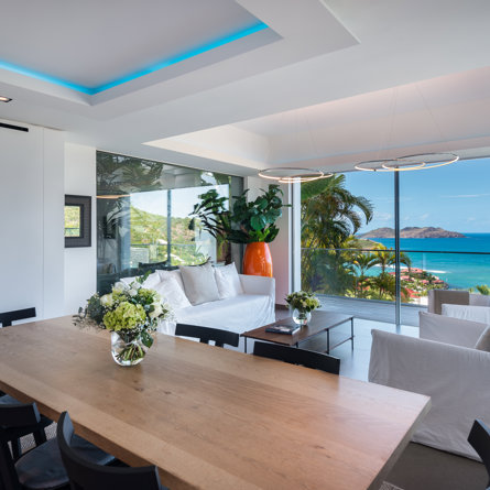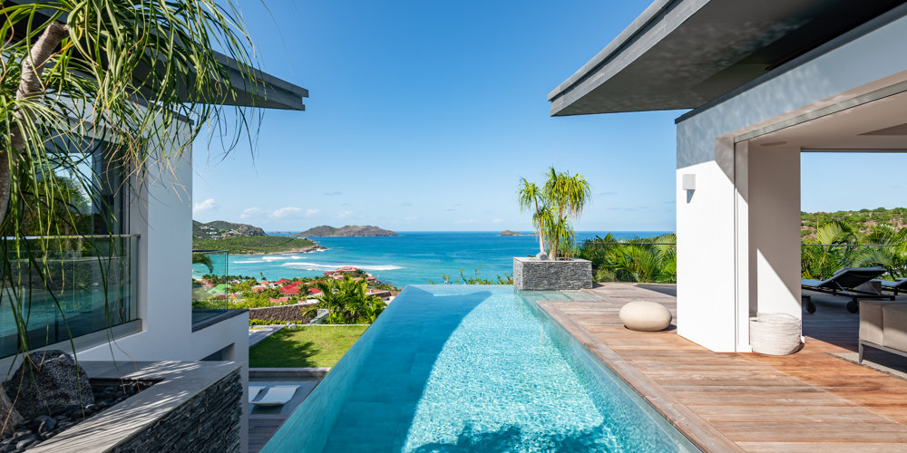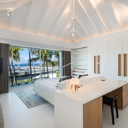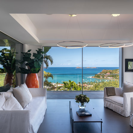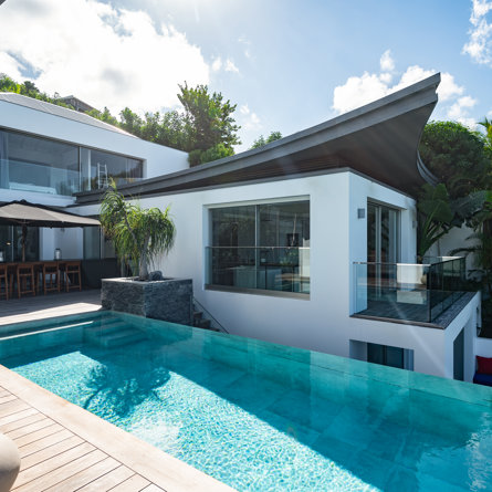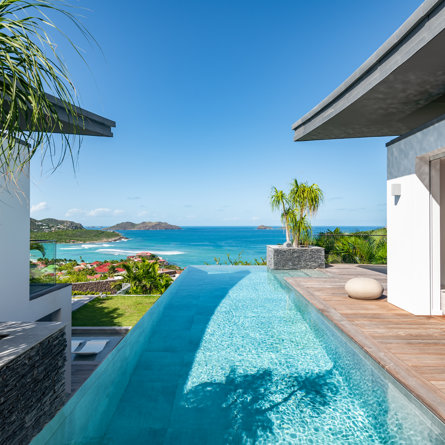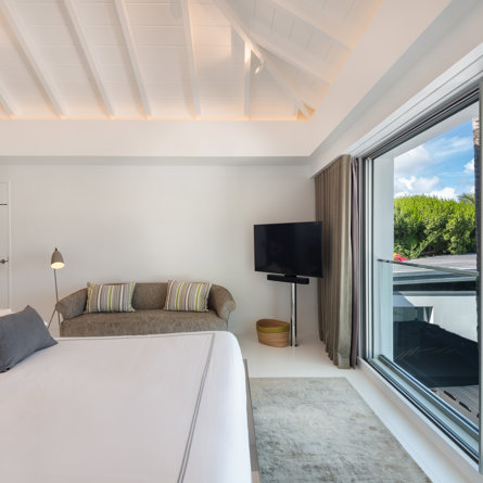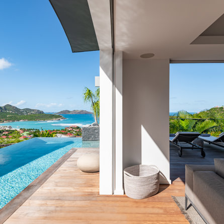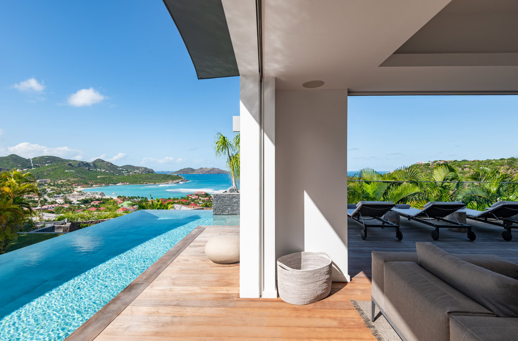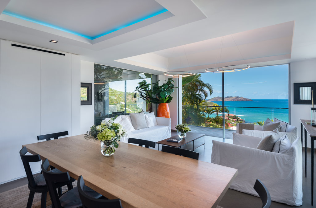 Friends travelling together will love Villa Wings’ prime location in St Jean, within walking distance to Eden Rock – St Barths, featuring four equal-size bedrooms accessed by stairs only in an open and ultra-modern design that also offers a TV room, a fitness area, and picturesque views over the bay.