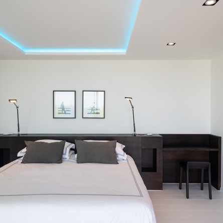 Sea view, Private terrace, Air conditioning, Queen size bed, Sofa, Closet, Desk, TV, Dish, Apple TV, Black out curtains, Safe.