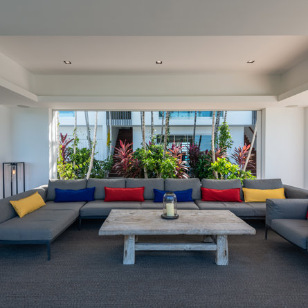 Sea & garden view, Private terrace, Air conditioning, Queen size bed, Closet, Desk, TV, Dish, Apple TV, Black out curtains, Safe.