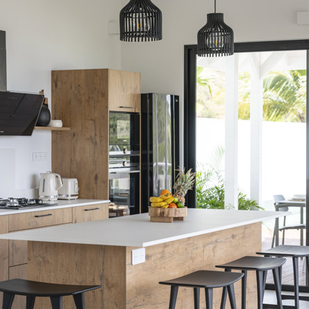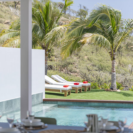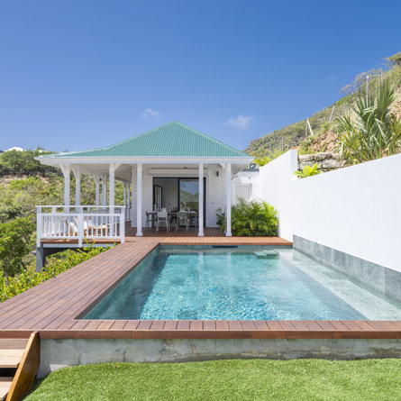 Nichée à flanc de colline, surplombant la plage de Toiny au sud de l’île, la Villa Amalur est un havre de paix intimiste. De plain-pied, cette propriété contemporaine est subtilement décorée dans un style élégant et épuré. Elle offre des chambres de taille égale, une vaste terrasse couverte ainsi qu’une piscine avec une vue panoramique à couper le souffle sur les montagnes sauvages et l’océan paisible.