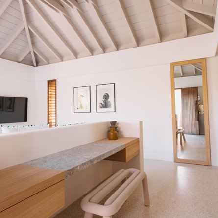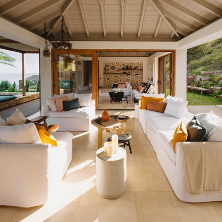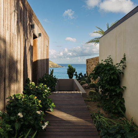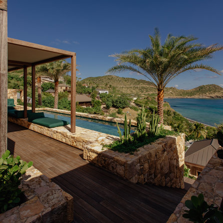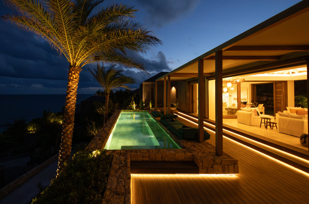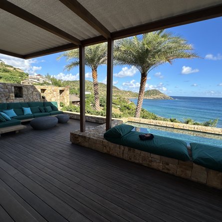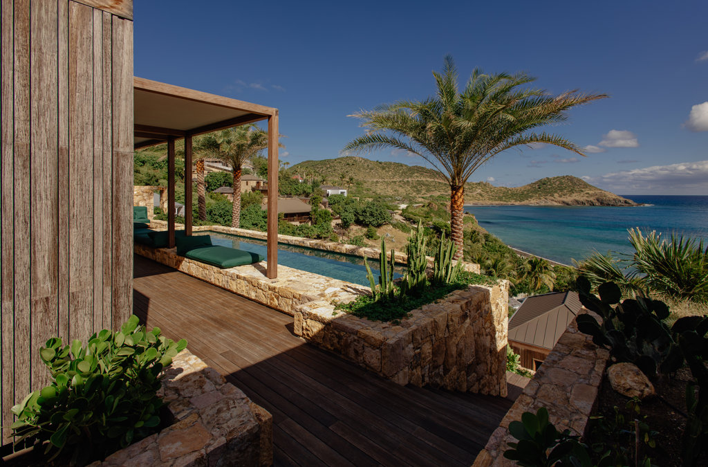 Perchée à flanc de colline, surplombant Toiny, la somptueuse Villa Anima marie avec raffinement pierre naturelle et bois noble pour offrir un refuge hors du commun. Cette demeure de charme abrite trois chambres climatisées, chacune avec sa salle de bain privée, garantissant confort et intimité dans un cadre spectaculaire. Depuis presque chaque pièce, des panoramas à couper le souffle s’ouvrent sur l’océan et les montagnes de Saint-Barthélemy. Laissez-vous séduire par la piscine, savourez un dîner gastronomique sur la terrasse-jardin ou abandonnez-vous à la douceur des alizés marins.