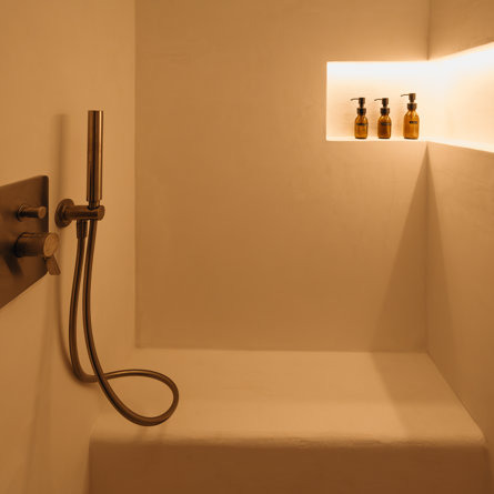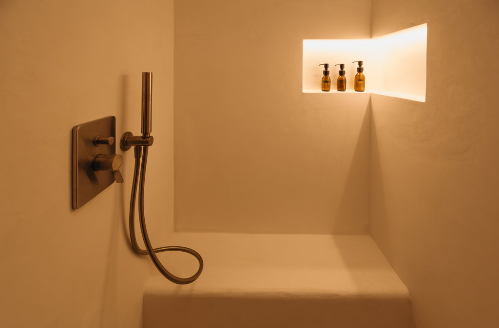 Salle de bain attenante, Douche à l'italienne, Lavabo, Sèche-cheveux, Toilettes fermées.