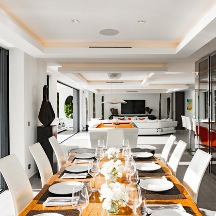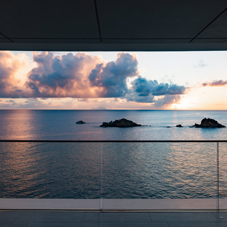 À flanc de falaise, la spectaculaire villa Axel Rocks se trouve à quelques minutes à pied du centre de Gustavia et ne manquera pas de vous séduire par ses détails sophistiqués : dans une propriété moderne aux tons crème avec vue sur l’océan dont les chambres de taille égale se trouvent sous le même toit, vous serez charmé par un escalier tout en verre, un practice de golf virtuel dans la salle de sport, une piscine miroir et des espaces savamment pensés pour vous sentir aussi bien que chez vous, loin de chez vous.