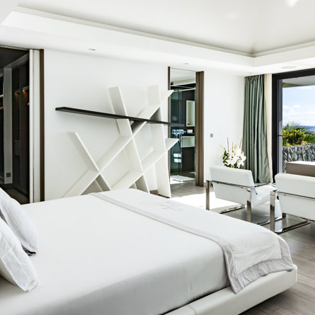 Vue mer & piscine, Terrasse, Air conditionné, Lit king size, Dressing, Bureau, TV, Rideaux occultants, Coffre-fort.