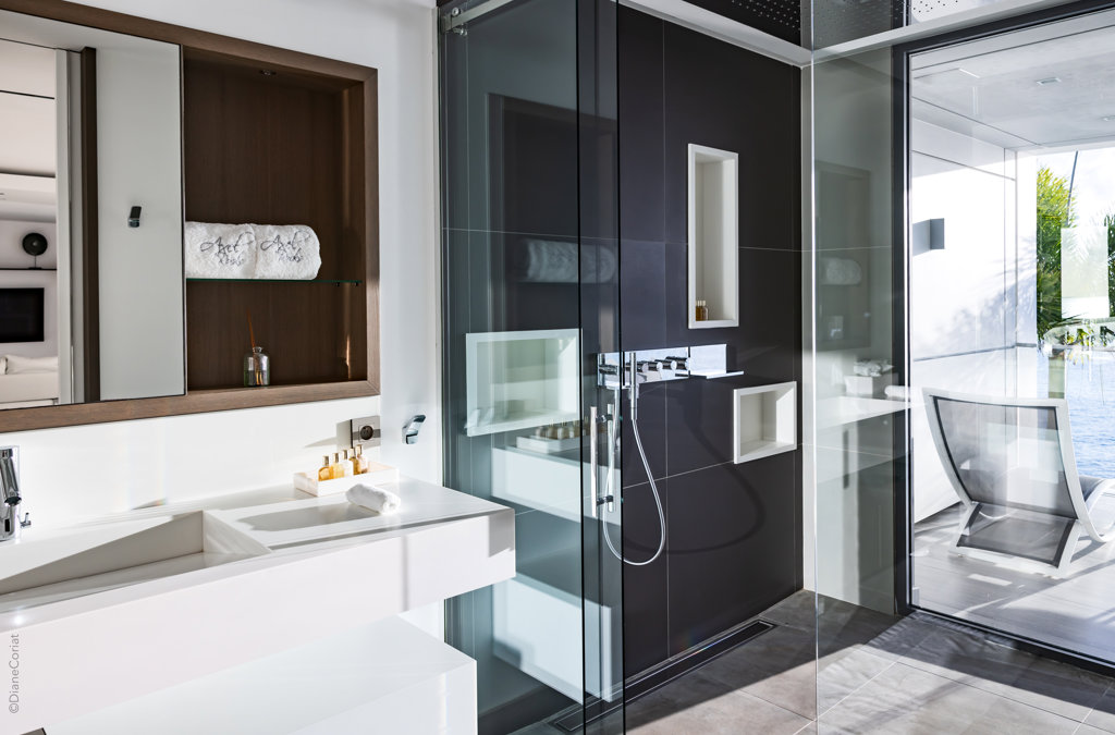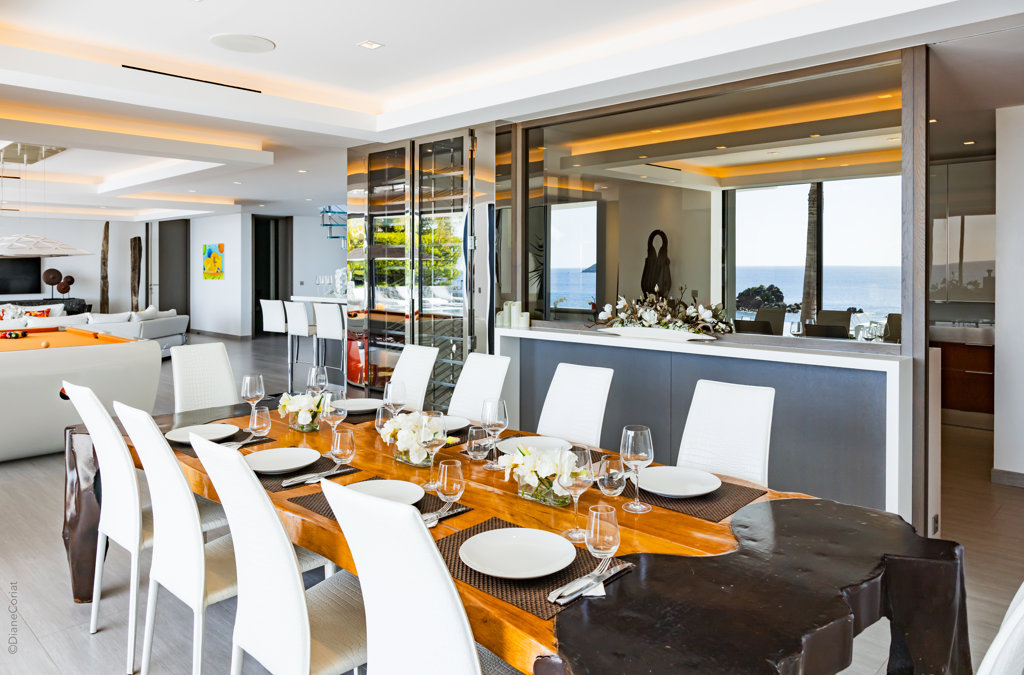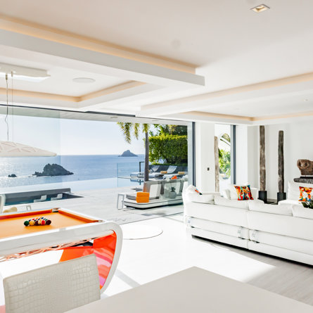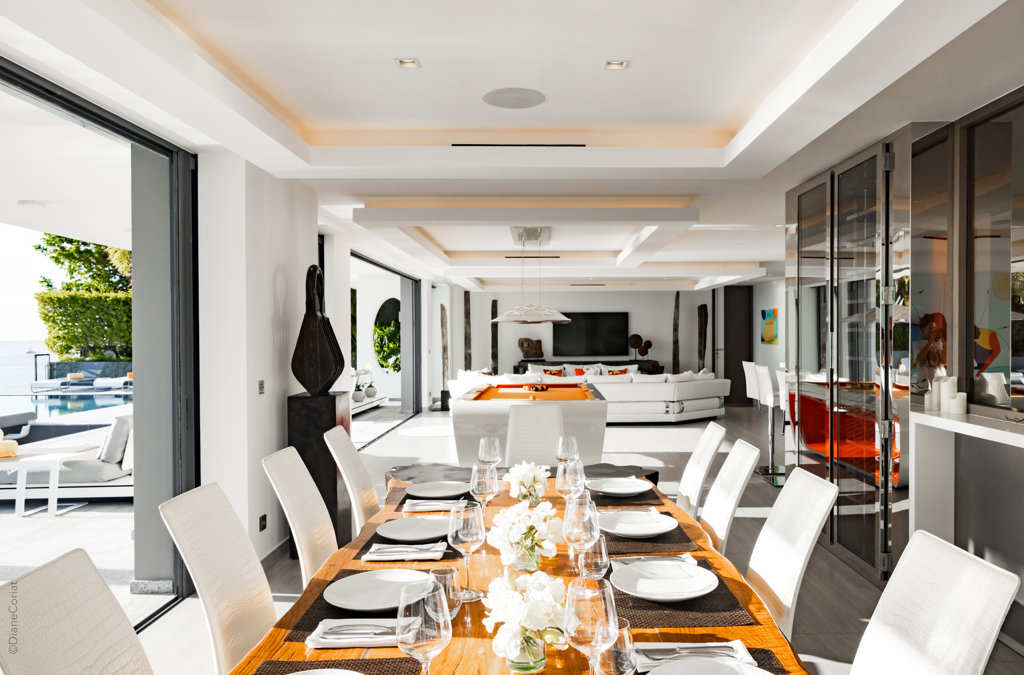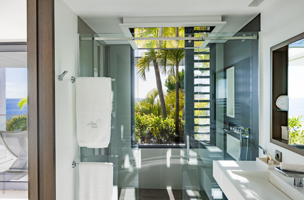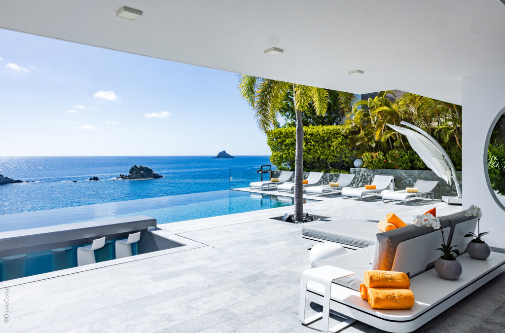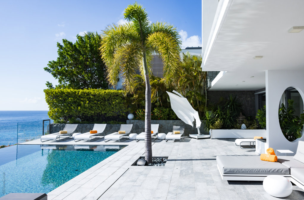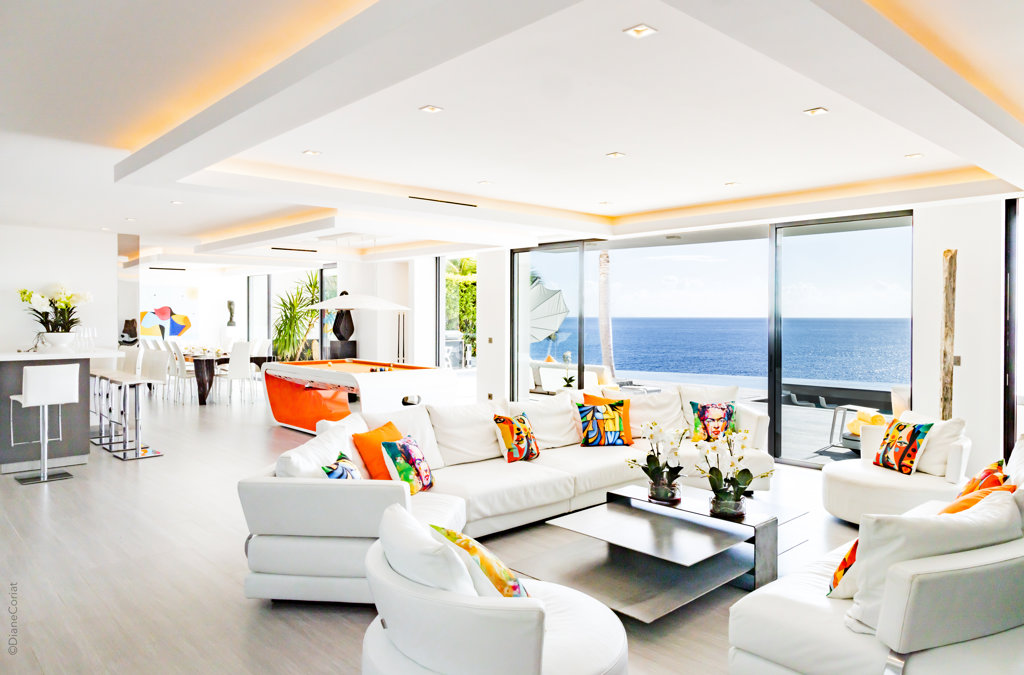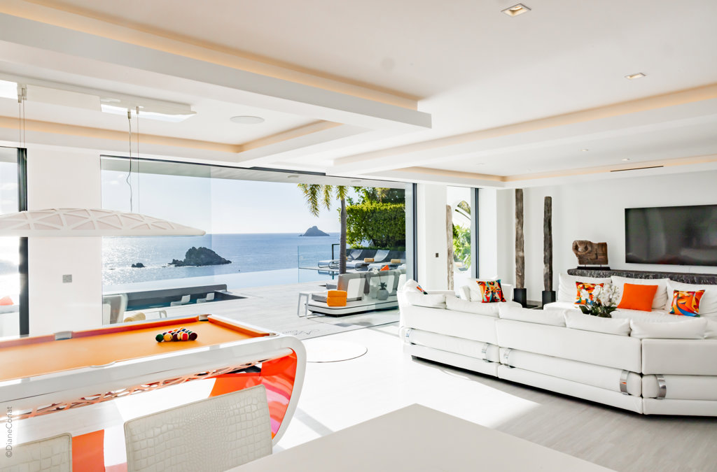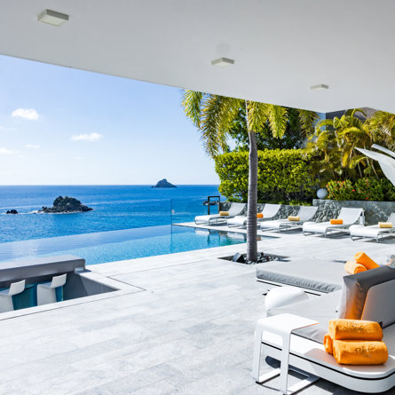À flanc de falaise, la spectaculaire villa Axel Rocks se trouve à quelques minutes à pied du centre de Gustavia et ne manquera pas de vous séduire par ses détails sophistiqués : dans une propriété moderne aux tons crème avec vue sur l’océan dont les chambres de taille égale se trouvent sous le même toit, vous serez charmé par un escalier tout en verre, un practice de golf virtuel dans la salle de sport, une piscine miroir et des espaces savamment pensés pour vous sentir aussi bien que chez vous, loin de chez vous.
